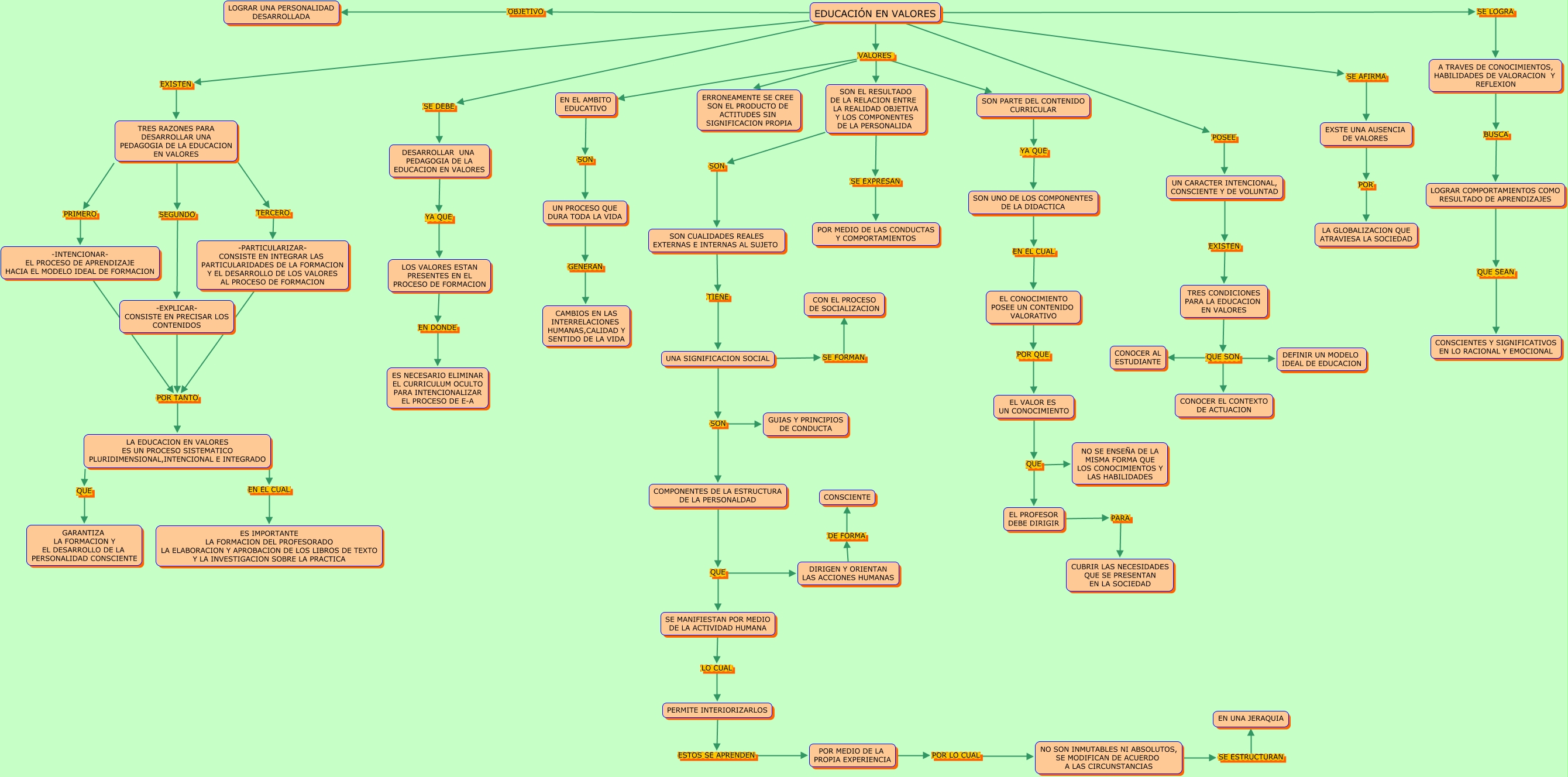 Este Cmap, tiene información relacionada con: EDUCACION EN VALORES, TRES CONDICIONES PARA LA EDUCACION EN VALORES QUE SON CONOCER EL CONTEXTO DE ACTUACION, LOS VALORES ESTAN PRESENTES EN EL PROCESO DE FORMACION EN DONDE ES NECESARIO ELIMINAR EL CURRICULUM OCULTO PARA INTENCIONALIZAR EL PROCESO DE E-A, SON UNO DE LOS COMPONENTES DE LA DIDACTICA EN EL CUAL EL CONOCIMIENTO POSEE UN CONTENIDO VALORATIVO, EDUCACIÓN EN VALORES VALORES ERRONEAMENTE SE CREE SON EL PRODUCTO DE ACTITUDES SIN SIGNIFICACION PROPIA, LA EDUCACION EN VALORES ES UN PROCESO SISTEMATICO PLURIDIMENSIONAL,INTENCIONAL E INTEGRADO QUE GARANTIZA LA FORMACION Y EL DESARROLLO DE LA PERSONALIDAD CONSCIENTE, EDUCACIÓN EN VALORES POSEE UN CARACTER INTENCIONAL, CONSCIENTE Y DE VOLUNTAD, SON EL RESULTADO DE LA RELACION ENTRE LA REALIDAD OBJETIVA Y LOS COMPONENTES DE LA PERSONALIDA SON SON CUALIDADES REALES EXTERNAS E INTERNAS AL SUJETO, -PARTICULARIZAR- CONSISTE EN INTEGRAR LAS PARTICULARIDADES DE LA FORMACION Y EL DESARROLLO DE LOS VALORES AL PROCESO DE FORMACION POR TANTO LA EDUCACION EN VALORES ES UN PROCESO SISTEMATICO PLURIDIMENSIONAL,INTENCIONAL E INTEGRADO, -EXPLICAR- CONSISTE EN PRECISAR LOS CONTENIDOS POR TANTO LA EDUCACION EN VALORES ES UN PROCESO SISTEMATICO PLURIDIMENSIONAL,INTENCIONAL E INTEGRADO, COMPONENTES DE LA ESTRUCTURA DE LA PERSONALDAD QUE SE MANIFIESTAN POR MEDIO DE LA ACTIVIDAD HUMANA, TRES RAZONES PARA DESARROLLAR UNA PEDAGOGIA DE LA EDUCACION EN VALORES SEGUNDO -EXPLICAR- CONSISTE EN PRECISAR LOS CONTENIDOS, TRES CONDICIONES PARA LA EDUCACION EN VALORES QUE SON CONOCER AL ESTUDIANTE, EL VALOR ES UN CONOCIMIENTO QUE NO SE ENSEÑA DE LA MISMA FORMA QUE LOS CONOCIMIENTOS Y LAS HABILIDADES, EDUCACIÓN EN VALORES EXISTEN TRES RAZONES PARA DESARROLLAR UNA PEDAGOGIA DE LA EDUCACION EN VALORES, SON PARTE DEL CONTENIDO CURRICULAR YA QUE SON UNO DE LOS COMPONENTES DE LA DIDACTICA, EDUCACIÓN EN VALORES SE DEBE DESARROLLAR UNA PEDAGOGIA DE LA EDUCACION EN VALORES, EL VALOR ES UN CONOCIMIENTO QUE EL PROFESOR DEBE DIRIGIR, -INTENCIONAR- EL PROCESO DE APRENDIZAJE HACIA EL MODELO IDEAL DE FORMACION POR TANTO LA EDUCACION EN VALORES ES UN PROCESO SISTEMATICO PLURIDIMENSIONAL,INTENCIONAL E INTEGRADO, LOGRAR COMPORTAMIENTOS COMO RESULTADO DE APRENDIZAJES QUE SEAN CONSCIENTES Y SIGNIFICATIVOS EN LO RACIONAL Y EMOCIONAL, TRES CONDICIONES PARA LA EDUCACION EN VALORES QUE SON DEFINIR UN MODELO IDEAL DE EDUCACION