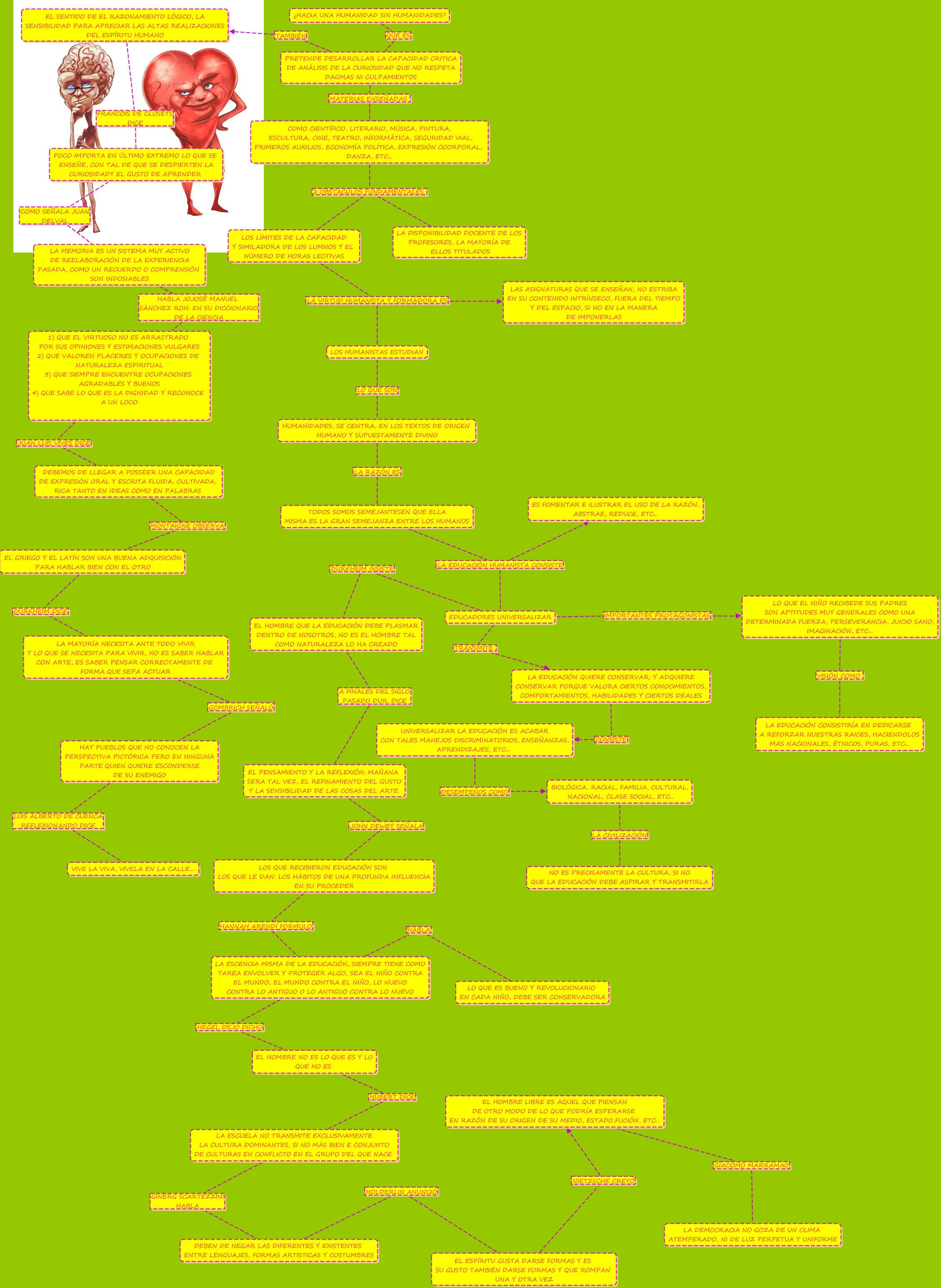 Este Cmap, tiene información relacionada con: Sin Título 1, POCO IMPORTA EN ÚLTIMO EXTREMO LO QUE SE ENSEÑE, CON TAL DE QUE SE DESPIERTEN LA CURIOSIDADY EL GUSTO DE APRENDER COMO SEÑALA JUAN DELVAL LA MEMORIA ES UN SISTEMA MUY ACTIVO DE REELABORACIÓN DE LA EXPERIENCIA PASADA, COMO UN RECUERDO O COMPRENSIÓN SON INDOSIABLES, LO QUE EL NIÑO RECIBEDE SUS PADRES SON APTITUDES MUY GENERALES COMO UNA DETERMINADA FUERZA, PERSEVERANCIA, JUICIO SANO, IMAGINACIÓN, ETC... VISIÓN COMO LA EDUCACIÓN CONSISTIRÍA EN DEDICARSE A REFORZAR NUESTRAS RAICES, HACIENDOLOS MAS NACIONALES, ÉTNICOS, PURAS, ETC..., TODOS SOMOS SEMEJANTESEN QUE ELLA MISMA ES LA GRAN SEMEJANZA ENTRE LOS HUMANOS LA EDUCACIÓN HUMANISTA CONSISTE EDUCADORES UNIVERSALIZAR, TODOS SOMOS SEMEJANTESEN QUE ELLA MISMA ES LA GRAN SEMEJANZA ENTRE LOS HUMANOS LA EDUCACIÓN HUMANISTA CONSISTE ES FOMENTAR E ILUSTRAR EL USO DE LA RAZÓN, ABSTRAE, REDUCE, ETC..., EL SENTIDO DE EL RAZONAMIENTO LÓGICO, LA SENSIBILIDAD PARA APRECIAR LAS ALTAS REALIZACIONES DEL ESPÍRITU HUMANO FRANCOIS DE CLOSETS DICE POCO IMPORTA EN ÚLTIMO EXTREMO LO QUE SE ENSEÑE, CON TAL DE QUE SE DESPIERTEN LA CURIOSIDADY EL GUSTO DE APRENDER, LOS LÍMITES DE LA CAPACIDAD Y SIMILADORA DE LOS LUMNOS Y EL NÚMERO DE HORAS LECTIVAS LA VIRTUD HUMANISTA Y FORMADORA ES LAS ASIGNATURAS QUE SE ENSEÑAN, NO ESTRIBA EN SU CONTENIDO INTRÍNSECO, FUERA DEL TIEMPO Y DEL ESPACIO, SI NO EN LA MANERA DE IMPONERLAS, LA ESCENCIA MISMA DE LA EDUCACIÓN, SIEMPRE TIENE COMO TAREA ENVOLVER Y PROTEGER ALGO, SEA EL NIÑO CONTRA EL MUNDO, EL MUNDO CONTRA EL NIÑO, LO NUEVO CONTRA LO ANTIGUO O LO ANTIGUO CONTRA LO NUEVO HABLA LO QUE ES BUENO Y REVOLUCIONARIO EN CADA NIÑO, DEBE SER CONSERVADORA, LA MEMORIA ES UN SISTEMA MUY ACTIVO DE REELABORACIÓN DE LA EXPERIENCIA PASADA, COMO UN RECUERDO O COMPRENSIÓN SON INDOSIABLES HABLA JOJOSÉ MANUEL SÁNCHEZ RON: EN SU DICCIONARIO DE LA CIENCIA 1) QUE EL VIRTUOSO NO ES ARRASTRADO POR SUS OPINIONES Y ESTIMACIONES VULGARES 2) QUE VALOREN PLACERES Y OCUPACIONES DE NATURALEZA ESPIRITUAL 3) QUE SIEMPRE ENCUENTRE OCUPACIONES AGRADABLES Y BUENOS 4) QUE SABE LO QUE ES LA DIGNIDAD Y RECONOCE A UN LOCO, EL ESPÍRITU GUSTA DARSE FORMAS Y ES SU GUSTO TAMBIÉN DARSE FORMAS Y QUE ROMPAN UNA Y OTRA VEZ NIETZSCHE CREYÓ EL HOMBRE LIBRE ES AQUEL QUE PIENSAN DE OTRO MODO DE LO QUE PODRÍA ESPERARSE EN RAZÓN DE SU ORIGEN DE SU MEDIO, ESTADO,FUCIÓN, ETC..., EDUCADORES UNIVERSALIZAR DURKHEIM INSISTE EL HOMBRE QUE LA EDUCACIÓN DEBE PLASMAR DENTRO DE NOSOTROS, NO ES EL HOMBRE TAL COMO NATURALEZA LO HA CREADO, LA MAYORÍA NECESITA ANTE TODO VIVIR Y LO QUE SE NECESITA PARA VIVIR, NO ES SABER HABLAR CON ARTE, ES SABER PENSAR CORRECTAMENTE DE FORMA QUE SEPA ACTUAR GOMBRICH SEÑALÓ HAY PUEBLOS QUE NO CONOCEN LA PERSPECTIVA PICTÓRICA PERO EN NINGUNA PARTE QUIEN QUIERE ESCONDERSE DE SU ENEMIGO, LOS HUMANISTAS ESTUDIAN LO QUE SON HUMANIDADES, SE CENTRA, EN LOS TEXTOS DE ORIGEN HUMANO Y SUPUESTAMENTE DIVINO, EL HOMBRE QUE LA EDUCACIÓN DEBE PLASMAR DENTRO DE NOSOTROS, NO ES EL HOMBRE TAL COMO NATURALEZA LO HA CREADO A FINALES DEL SIGLO PASADO DUR. DICE EL PENSAMIENTO Y LA REFLEXIÓN; MAÑANA SERA TAL VEZ, EL REFINAMIENTO DEL GUSTO Y LA SENSIBILIDAD DE LAS COSAS DEL ARTE., EL HOMBRE LIBRE ES AQUEL QUE PIENSAN DE OTRO MODO DE LO QUE PODRÍA ESPERARSE EN RAZÓN DE SU ORIGEN DE SU MEDIO, ESTADO,FUCIÓN, ETC... GIACOMO MARRAMAO LA DEMOCRACIA NO GOZA DE UN CLIMA ATEMPERADO, NI DE LUZ PERPETUA Y UNIFORME, LA EDUCACIÓN QUIERE CONSERVAR; Y ADQUIERE CONSERVAR PORQUE VALORA CIERTOS CONOCIMIENTOS, COMPORTAMIENTOS, HABILIDADES Y CIERTOS DEALES CONSISTE UNIVERSALIZAR LA EDUCACIÓN ES ACABAR CON TALES MANEJOS DISCRIMINATORIOS, ENSEÑANZAS, APRENDIZAJES, ETC..., HAY PUEBLOS QUE NO CONOCEN LA PERSPECTIVA PICTÓRICA PERO EN NINGUNA PARTE QUIEN QUIERE ESCONDERSE DE SU ENEMIGO LUIS ALBERTO DE CUENCA REFLEXIONANDO DICE VIVE LA VIVA, VIVELA EN LA CALLE...., EL HOMBRE NO ES LO QUE ES Y LO QUE NO ES HUBERT DICE LA ESCUELA NO TRANSMITE EXCLUSIVAMENTE LA CULTURA DOMINANTES, SI NO MÁS BIEN E CONJUNTO DE CULTURAS EN CONFLICTO EN EL GRUPO DEL QUE NACE, LOS QUE RECIBIERON EDUCACIÓN SON LOS QUE LE DAN: LOS HÁBITOS DE UNA PROFUNDA INFLUENCIA EN SU PROCEDER HANNAH ARENDÍ FORMULO LA ESCENCIA MISMA DE LA EDUCACIÓN, SIEMPRE TIENE COMO TAREA ENVOLVER Y PROTEGER ALGO, SEA EL NIÑO CONTRA EL MUNDO, EL MUNDO CONTRA EL NIÑO, LO NUEVO CONTRA LO ANTIGUO O LO ANTIGUO CONTRA LO NUEVO, PRETENDE DESARROLLAR LA CAPACIDAD CRITICA DE ANÁLISIS DE LA CURIOSIDAD QUE NO RESPETA DAGMAS NI CULPAMIENTOS TAMBIÉN EL SENTIDO DE EL RAZONAMIENTO LÓGICO, LA SENSIBILIDAD PARA APRECIAR LAS ALTAS REALIZACIONES DEL ESPÍRITU HUMANO, EDUCADORES UNIVERSALIZAR TRANSMITE LA EDUCACIÓN QUIERE CONSERVAR; Y ADQUIERE CONSERVAR PORQUE VALORA CIERTOS CONOCIMIENTOS, COMPORTAMIENTOS, HABILIDADES Y CIERTOS DEALES