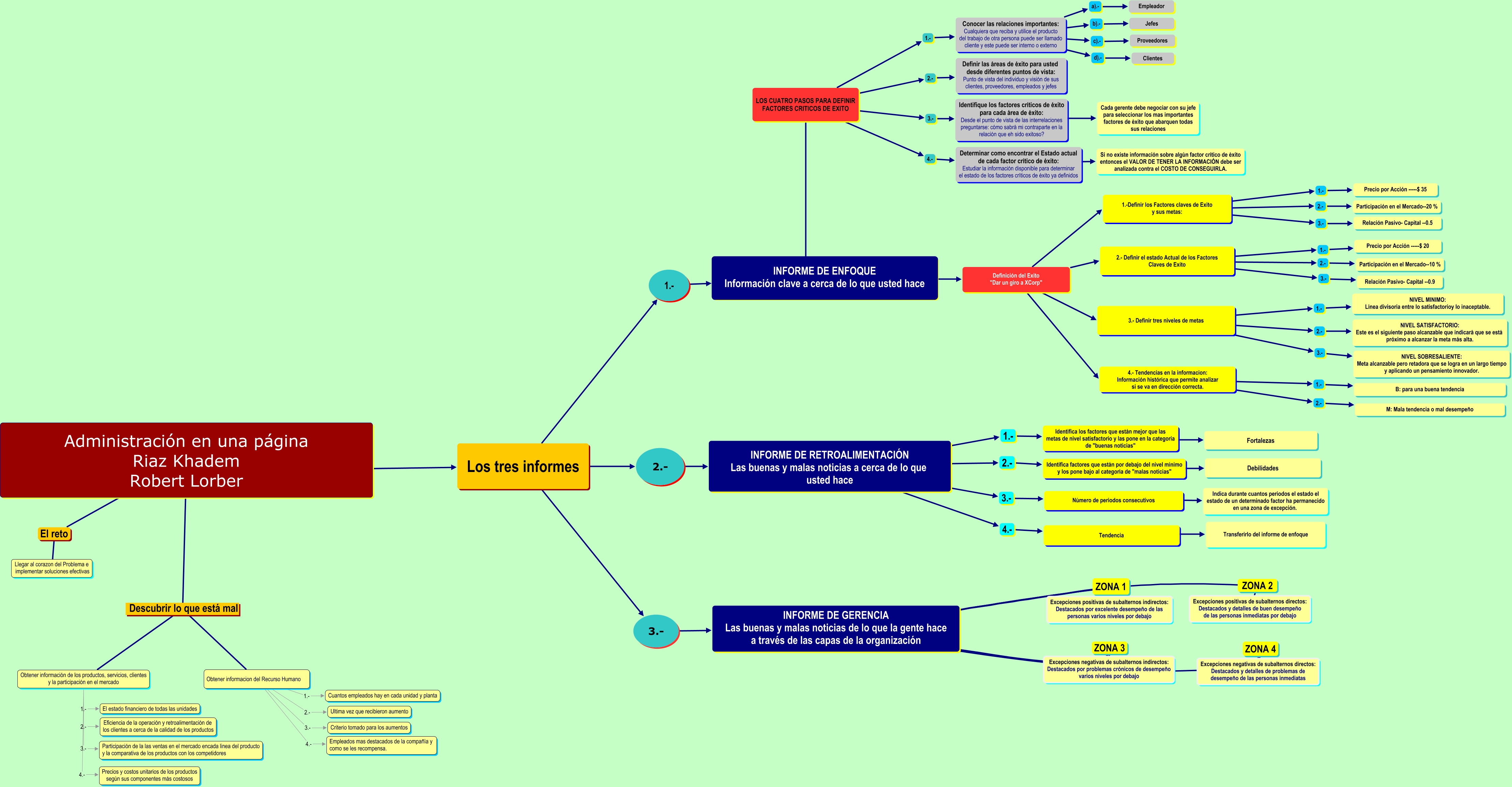 Este Cmap, tiene información relacionada con: Administración en una Página, LOS CUATRO PASOS PARA DEFINIR FACTORES CRITICOS DE EXITO 3.- Identifique los factores críticos de éxito para cada área de éxito: Desde el punto de vista de las interrelaciones preguntarse: cómo sabrá mi contraparte en la relación que eh sido exitoso?, 3.- Definir tres niveles de metas 3.- NIVEL SOBRESALIENTE: Meta alcanzable pero retadora que se logra en un largo tiempo y aplicando un pensamiento innovador., Los tres informes 1.- INFORME DE ENFOQUE Información clave a cerca de lo que usted hace, Administración en una página Riaz Khadem Robert Lorber Descubrir lo que está mal Obtener información de los productos, servicios, clientes y la participación en el mercado, Administración en una página Riaz Khadem Robert Lorber ???? Los tres informes, Conocer las relaciones importantes: Cualquiera que reciba y utilice el producto del trabajo de otra persona puede ser llamado cliente y este puede ser interno o externo c).- Proveedores, INFORME DE RETROALIMENTACIÓN Las buenas y malas noticias a cerca de lo que usted hace 1.- Identifica los factores que están mejor que las metas de nivel satisfactorio y las pone en la categoria de "buenas noticias", Los tres informes 2.- INFORME DE RETROALIMENTACIÓN Las buenas y malas noticias a cerca de lo que usted hace, Identifica factores que están por debajo del nivel mínimo y los pone bajo al categoría de "malas noticias" ???? Debilidades, INFORME DE RETROALIMENTACIÓN Las buenas y malas noticias a cerca de lo que usted hace 2.- Identifica factores que están por debajo del nivel mínimo y los pone bajo al categoría de "malas noticias", Administración en una página Riaz Khadem Robert Lorber Descubrir lo que está mal Obtener informacion del Recurso Humano, Conocer las relaciones importantes: Cualquiera que reciba y utilice el producto del trabajo de otra persona puede ser llamado cliente y este puede ser interno o externo d).- Clientes, 1.-Definir los Factores claves de Exito y sus metas: 3.- Relación Pasivo- Capital --0.5, Obtener información de los productos, servicios, clientes y la participación en el mercado 1.- El estado financiero de todas las unidades, INFORME DE ENFOQUE Información clave a cerca de lo que usted hace Definición del Exito "Dar un giro a XCorp" 4.- Tendencias en la informacion: Información histórica que permite analizar si se va en dirección correcta., Conocer las relaciones importantes: Cualquiera que reciba y utilice el producto del trabajo de otra persona puede ser llamado cliente y este puede ser interno o externo b).- Jefes, Número de periodos consecutivos ???? Indica durante cuantos periodos el estado el estado de un determinado factor ha permanecido en una zona de excepción., 3.- Definir tres niveles de metas 1.- NIVEL MINIMO: Línea divisoria entre lo satisfactorioy lo inaceptable., LOS CUATRO PASOS PARA DEFINIR FACTORES CRITICOS DE EXITO ???? INFORME DE ENFOQUE Información clave a cerca de lo que usted hace, Identifica los factores que están mejor que las metas de nivel satisfactorio y las pone en la categoria de "buenas noticias" ???? Fortalezas