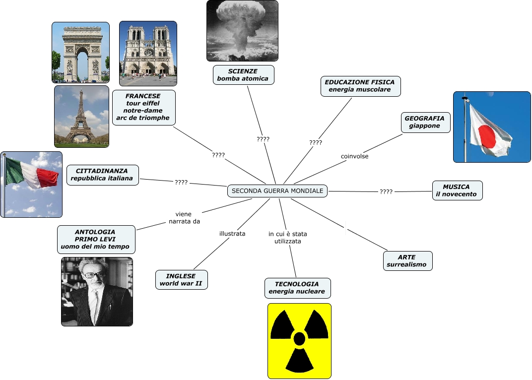 Questa Cmap, creata con IHMC CmapTools, contiene informazioni relative a: seconda guerra mondiale, SECONDA GUERRA MONDIALE viene narrata da ANTOLOGIA PRIMO LEVI uomo del mio tempo, SECONDA GUERRA MONDIALE ???? FRANCESE tour eiffel notre-dame arc de triomphe, SECONDA GUERRA MONDIALE ARTE surrealismo, SECONDA GUERRA MONDIALE ???? SCIENZE bomba atomica, SECONDA GUERRA MONDIALE ???? CITTADINANZA repubblica italiana, SECONDA GUERRA MONDIALE ???? EDUCAZIONE FISICA energia muscolare, SECONDA GUERRA MONDIALE in cui è stata utilizzata TECNOLOGIA energia nucleare, SECONDA GUERRA MONDIALE illustrata INGLESE world war II, SECONDA GUERRA MONDIALE coinvolse GEOGRAFIA giappone, SECONDA GUERRA MONDIALE ???? MUSICA il novecento