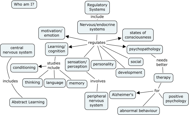 Psychology JDN Rev, Regulatory Systems include Nervous/endocrine systems, Learning/ cognition studies nclude thinking, therapy for Alzheimer's, Nervous/endocrine systems regulates states of consciousness, Nervous/endocrine systems regulates Learning/ cognition, central nervous system includes Abstract Learning, Nervous/endocrine systems regulates sensation/ perception, Learning/ cognition studies nclude conditioning, therapy for abnormal behaviour, psychopathology needs better therapy