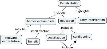 Autism Rehab - JDN Rev, socialization includes conditioning, education includes socialization, Rehabilitation includes education, education includes conditioning, homocysteine diets may be relevant in the future, Rehabilitation includes homocysteine diets, homocysteine diets small fraction benefit, Rehabilitation highlights early intervention