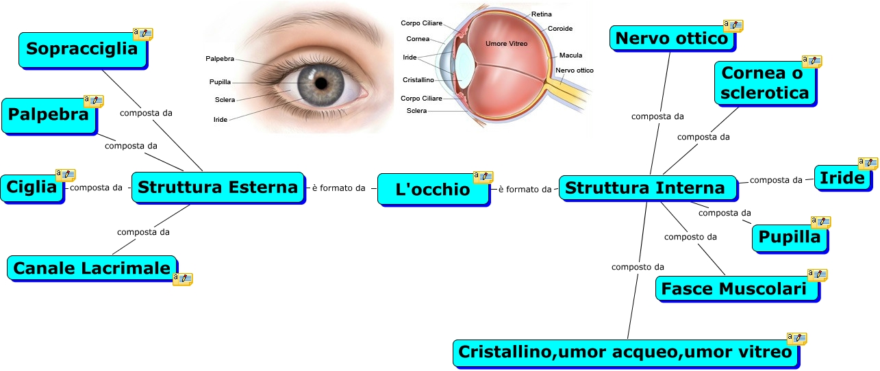 Questa Cmap, creata con IHMC CmapTools, contiene informazioni relative a: Morgese, L'occhio è formato da Struttura Interna, Struttura Esterna composta da Canale Lacrimale, Struttura Interna composta da Cornea o sclerotica, Struttura Esterna composta da Ciglia, Struttura Interna composta da Pupilla, Struttura Interna composta da Nervo ottico, Struttura Interna composta da Iride, Struttura Esterna composta da Palpebra, Struttura Esterna composta da Sopracciglia, L'occhio è formato da Struttura Esterna, Struttura Interna composto da Cristallino,umor acqueo,umor vitreo, Struttura Interna composto da Fasce Muscolari