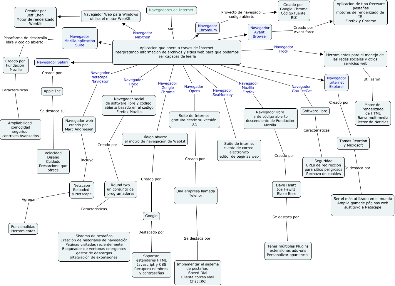 Este Cmap, tiene información relacionada con: SALA_1_PC19_Navegadores114, Una empresa llamada Telenor Se destaca por Implementar el sistema de pestañas Speed Dial Cliente correo Mail Chat IRC, Aplicacion que opera a traves de Internet interpretando informacion de archivos y sitios web para que podamos ser capaces de leerla Navegador SeaMonkey Suite de internet cliente de correo electronico editor de páginas web, Navegador libre y de código abierto descendiente de Fundación Mozilla Creado por Dave Hyatt Joe Hewitt Blake Ross, Google Destacado por Soportar estándares HTML Javascript y CSS Recupera nombres y contraseñas, Aplicacion que opera a traves de Internet interpretando informacion de archivos y sitios web para que podamos ser capaces de leerla Navegador Opera Suite de Internet gratuita desde su versión 8.5, Netscape Reloaded y Netscape Agregan Funcionalidad Herramientas, Navegador social de software libre y código abierto basado en el código Firefox Mozilla Creado por Round two un conjunto de programadores, Tomas Reardon y Microsoft Se destaca por Ser el más utilizado en el mundo Amplia gamade páginas web sustituyo a Netscape, Creado por Fundación Mozilla Caractersiticas Ampliabilidad comodidad seguridd controles Avanzados, Aplicacion que opera a traves de Internet interpretando informacion de archivos y sitios web para que podamos ser capaces de leerla Navegador Flock Herramientas para el manejo de las redes sociales y otros servicios web, Aplicacion que opera a traves de Internet interpretando informacion de archivos y sitios web para que podamos ser capaces de leerla ???? Navegador Mozilla aplicación Suite, Navegadores de Internet son Aplicacion que opera a traves de Internet interpretando informacion de archivos y sitios web para que podamos ser capaces de leerla, Aplicacion que opera a traves de Internet interpretando informacion de archivos y sitios web para que podamos ser capaces de leerla ???? Navegador Chromium, Dave Hyatt Joe Hewitt Blake Ross Se destaca por Tener múltiples Plugins extensiones add-ons Personalizar apariencia, Aplicacion que opera a traves de Internet interpretando informacion de archivos y sitios web para que podamos ser capaces de leerla ???? Navegador Avant Browser, Navegador Web para Windows utiliza el motor WebKit ???? Creador por Jeff Chen Motor de renderizado WebKit, Aplicacion que opera a traves de Internet interpretando informacion de archivos y sitios web para que podamos ser capaces de leerla Navegador Gnu IceCat Software libre, Aplicacion que opera a traves de Internet interpretando informacion de archivos y sitios web para que podamos ser capaces de leerla Navegador Google Chrome Código abierto el motro de navegación de Webkit, Navegador Internet Explorer Creado por Tomas Reardon y Microsoft, Software libre Caracteristicas Seguridad URLs de redirección para sitios peligrosos Rechazo de cookies