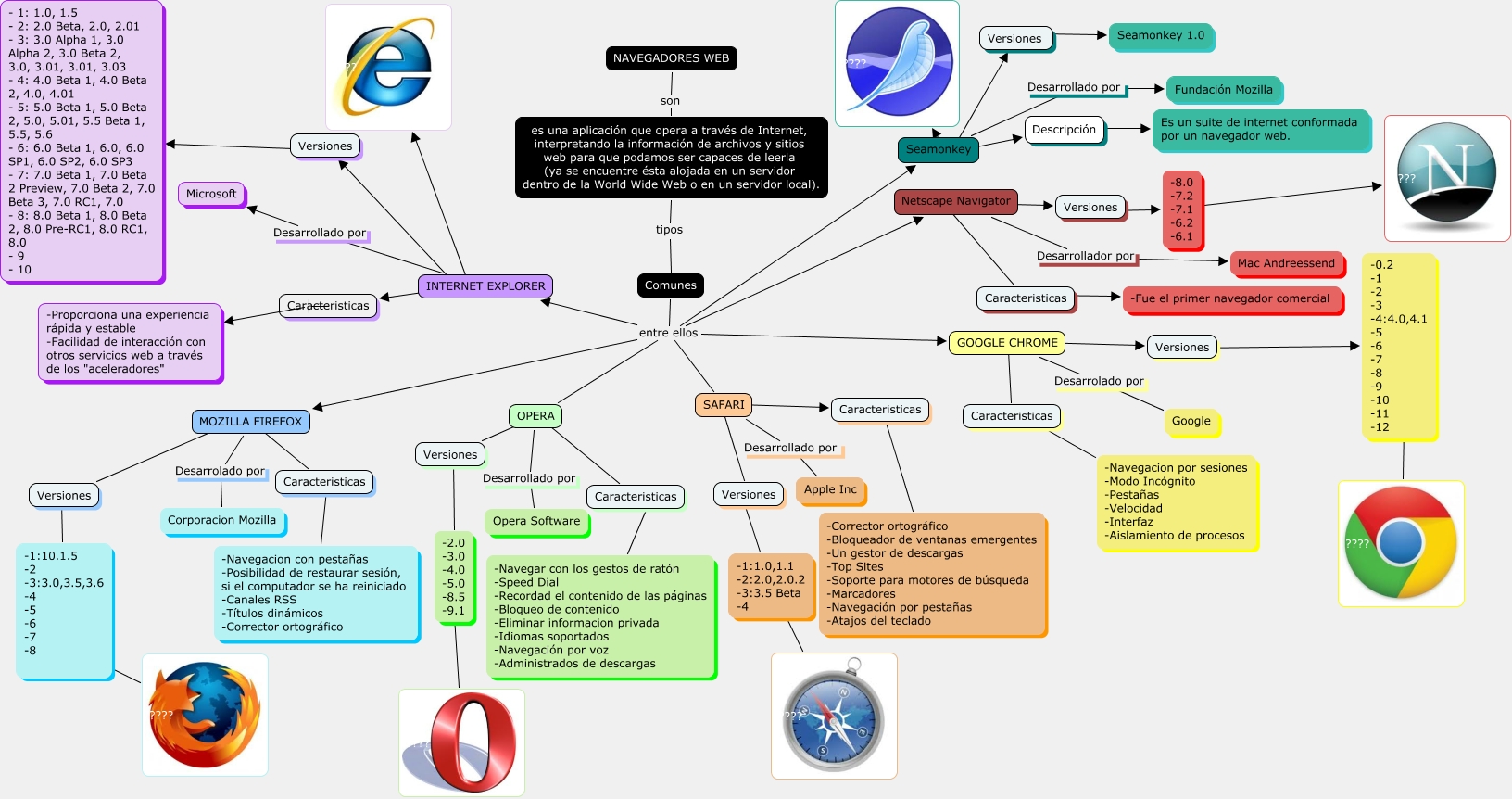 Este Cmap, tiene información relacionada con: SALA_1_PC22_Navegadores web, Versiones ???? -1:1.0,1.1 -2:2.0,2.0.2 -3:3.5 Beta -4, -8.0 -7.2 -7.1 -6.2 -6.1 ???? ????, Caracteristicas ???? -Navegar con los gestos de ratón -Speed Dial -Recordad el contenido de las páginas -Bloqueo de contenido -Eliminar informacion privada -Idiomas soportados -Navegación por voz -Administrados de descargas, GOOGLE CHROME ???? Caracteristicas, Versiones ???? -1:10.1.5 -2 -3:3.0,3.5,3.6 -4 -5 -6 -7 -8, Descripción ???? Es un suite de internet conformada por un navegador web., Comunes entre ellos SAFARI, Versiones ???? - 1: 1.0, 1.5 - 2: 2.0 Beta, 2.0, 2.01 - 3: 3.0 Alpha 1, 3.0 Alpha 2, 3.0 Beta 2, 3.0, 3.01, 3.01, 3.03 - 4: 4.0 Beta 1, 4.0 Beta 2, 4.0, 4.01 - 5: 5.0 Beta 1, 5.0 Beta 2, 5.0, 5.01, 5.5 Beta 1, 5.5, 5.6 - 6: 6.0 Beta 1, 6.0, 6.0 SP1, 6.0 SP2, 6.0 SP3 - 7: 7.0 Beta 1, 7.0 Beta 2 Preview, 7.0 Beta 2, 7.0 Beta 3, 7.0 RC1, 7.0 - 8: 8.0 Beta 1, 8.0 Beta 2, 8.0 Pre-RC1, 8.0 RC1, 8.0 - 9 - 10, SAFARI ???? Versiones, Netscape Navigator Desarrollador por Mac Andreessend, Seamonkey ???? Versiones, SAFARI Desarrollado por Apple Inc, Caracteristicas -Proporciona una experiencia rápida y estable -Facilidad de interacción con otros servicios web a través de los "aceleradores", Netscape Navigator ???? Versiones, Seamonkey Desarrollado por Fundación Mozilla, Versiones ???? -8.0 -7.2 -7.1 -6.2 -6.1, -1:1.0,1.1 -2:2.0,2.0.2 -3:3.5 Beta -4 ???? ????, Seamonkey ???? ????, Comunes entre ellos OPERA, GOOGLE CHROME ???? Versiones