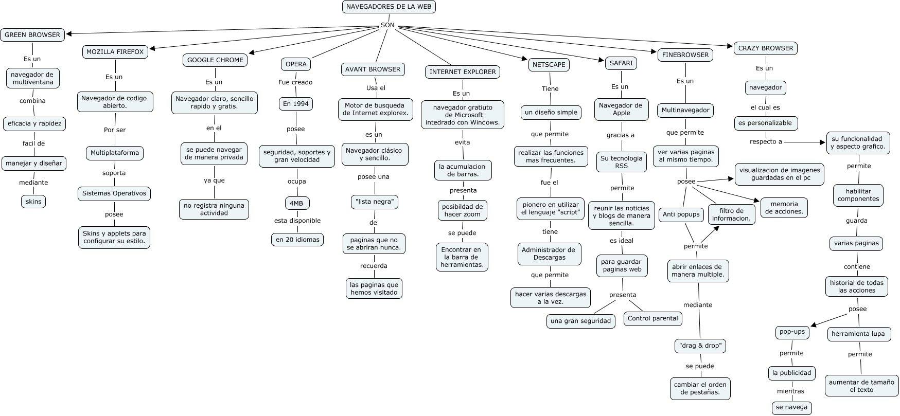 Este Cmap, tiene información relacionada con: SALA_1_PC24_NAVEGADORES, 4MB esta disponible en 20 idiomas, para guardar paginas web presenta una gran seguridad, NAVEGADORES DE LA WEB SON MOZILLA FIREFOX, su funcionalidad y aspecto grafico. permite habilitar componentes, NAVEGADORES DE LA WEB SON CRAZY BROWSER, historial de todas las acciones posee pop-ups, GREEN BROWSER Es un navegador de multiventana, INTERNET EXPLORER Es un navegador gratiuto de Microsoft intedrado con Windows., SAFARI Es un Navegador de Apple, NAVEGADORES DE LA WEB SON SAFARI, Navegador de codigo abierto. Por ser Multiplataforma, Su tecnologia RSS permite reunir las noticias y blogs de manera sencilla., historial de todas las acciones posee herramienta lupa, ver varias paginas al mismo tiempo. posee memoria de acciones., un diseño simple que permite realizar las funciones mas frecuentes., AVANT BROWSER Usa el Motor de busqueda de Internet explorex., Administrador de Descargas que permite hacer varias descargas a la vez., manejar y diseñar mediante skins, NAVEGADORES DE LA WEB SON GOOGLE CHROME, NAVEGADORES DE LA WEB SON FINEBROWSER