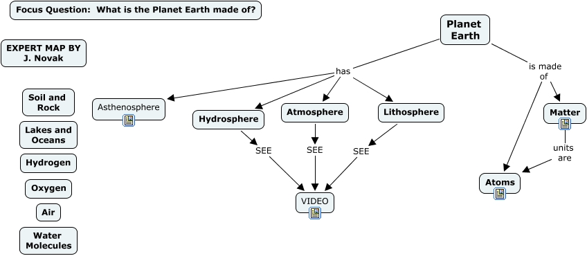 This Concept Map, created with IHMC CmapTools, has information related to: PLANET EARTH, Planet Earth has Atmosphere, Planet Earth is made of Atoms, Planet Earth is made of Matter, Hydrosphere SEE VIDEO, Matter units are Atoms, Planet Earth has Asthenosphere, Planet Earth has Hydrosphere, Planet Earth has Lithosphere, Lithosphere SEE VIDEO, Atmosphere SEE VIDEO