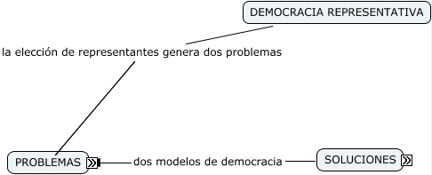 Este Cmap, tiene información relacionada con: democracia, SOLUCIONES dos modelos de democracia PROBLEMAS, DEMOCRACIA REPRESENTATIVA la elección de representantes genera dos problemas incorporación de los argumentos de la ciudadanía, DEMOCRACIA REPRESENTATIVA la elección de representantes genera dos problemas respaldo de la ciudadanía a las decisiones