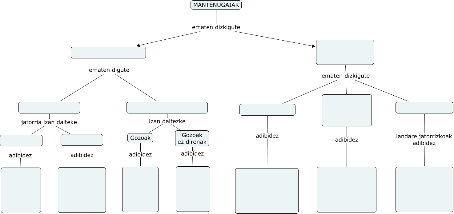 IHMC CmapTools-ekin sortu den kontzeptu-mapa honek honi buruzko informazioa du: Gure elikadura (1) Mantenugaiak ZURIA, landare jatorrizkoak adibidez, ematen digute, izan daitezke Gozoak, ematen dizkigute, adibidez, adibidez, ematen dizkigute, jatorria izan daiteke, MANTENUGAIAK ematen dizkigute, Gozoak ez direnak adibidez, Gozoak adibidez, adibidez, jatorria izan daiteke, ematen digute, izan daitezke Gozoak ez direnak, MANTENUGAIAK ematen dizkigute, adibidez, ematen dizkigute