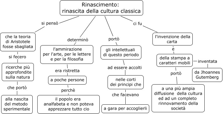 Questa Cmap, creata con IHMC CmapTools, contiene informazioni relative a: RINASCIMENTO PERNA, della stampa a caratteri mobili portò a una più ampia diffusione della cultura ed ad un completo rinnovamento della società, della stampa a caratteri mobili inventata da Jhoannes Gutemberg, Rinascimento: rinascita della cultura classica determinò l'ammirazione per l'arte, per le lettere e per la filosofia, Rinascimento: rinascita della cultura classica portò gli intellettuali di questo periodo, nelle corti dei principi che che facevano a gara per accoglierli, ricerche più approfondite sulla natura che portò alla nascita del metodo sperimentale, che la teoria di Aristotele fosse sbagliata si fecero ricerche più approfondite sulla natura, l'ammirazione per l'arte, per le lettere e per la filosofia era ristretta a poche persone, a poche persone perchè il popolo era analfabeta e non poteva apprezzare tutto cio, Rinascimento: rinascita della cultura classica si pensò che la teoria di Aristotele fosse sbagliata, gli intellettuali di questo periodo ad essere accolti nelle corti dei principi che, l'invenzione della carta e della stampa a caratteri mobili, Rinascimento: rinascita della cultura classica ci fu l'invenzione della carta