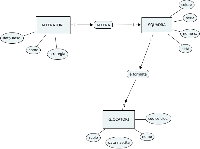 Questa Cmap, creata con IHMC CmapTools, contiene informazioni relative a: allenatori papini, è formata N GIOCATORI, SQUADRA ???? colore, SQUADRA 1 è formata, GIOCATORI ???? nome, GIOCATORI ???? codice cioc., ALLENATORE 1 ALLENA, SQUADRA ???? nome s., ALLENATORE ???? data nasc., GIOCATORI ???? ruolo, SQUADRA ???? serie, ALLENATORE ???? nome, GIOCATORI ???? data nascita, ALLENATORE ???? strategia, ALLENA 1 SQUADRA, SQUADRA ???? città