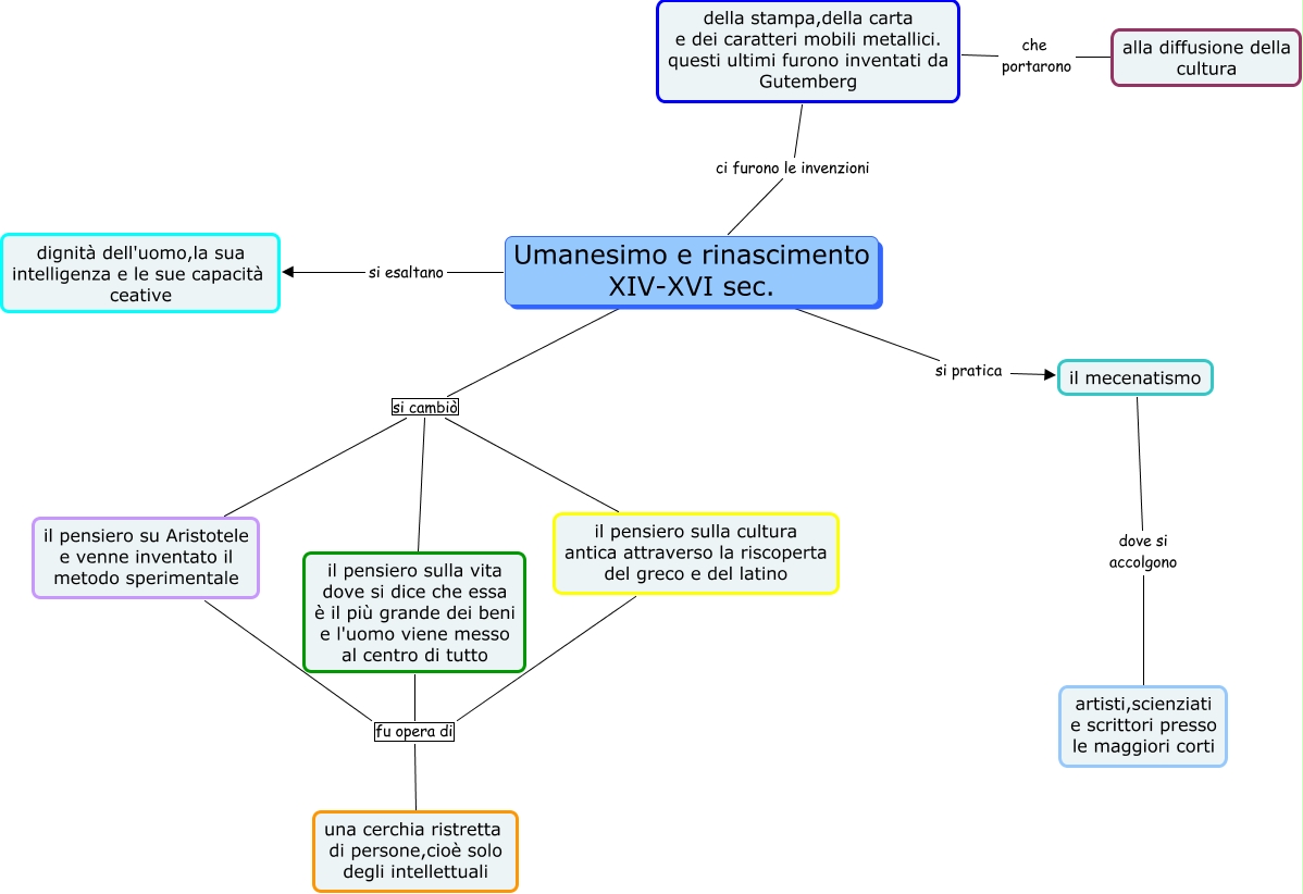 Questa Cmap, creata con IHMC CmapTools, contiene informazioni relative a: umanesimo e rinascimento, il pensiero sulla cultura antica attraverso la riscoperta del greco e del latino fu opera di una cerchia ristretta di persone,cioè solo degli intellettuali, Umanesimo e rinascimento XIV-XVI sec. ci furono le invenzioni della stampa,della carta e dei caratteri mobili metallici. questi ultimi furono inventati da Gutemberg, Umanesimo e rinascimento XIV-XVI sec. si esaltano dignità dell'uomo,la sua intelligenza e le sue capacità ceative, il mecenatismo dove si accolgono artisti,scienziati e scrittori presso le maggiori corti, Umanesimo e rinascimento XIV-XVI sec. si cambiò il pensiero su Aristotele e venne inventato il metodo sperimentale, Umanesimo e rinascimento XIV-XVI sec. si pratica il mecenatismo, il pensiero sulla vita dove si dice che essa è il più grande dei beni e l'uomo viene messo al centro di tutto fu opera di una cerchia ristretta di persone,cioè solo degli intellettuali, Umanesimo e rinascimento XIV-XVI sec. si cambiò il pensiero sulla vita dove si dice che essa è il più grande dei beni e l'uomo viene messo al centro di tutto, il pensiero su Aristotele e venne inventato il metodo sperimentale fu opera di una cerchia ristretta di persone,cioè solo degli intellettuali, Umanesimo e rinascimento XIV-XVI sec. si cambiò il pensiero sulla cultura antica attraverso la riscoperta del greco e del latino, della stampa,della carta e dei caratteri mobili metallici. questi ultimi furono inventati da Gutemberg che portarono alla diffusione della cultura