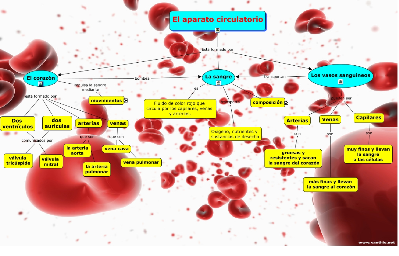Este Cmap, tiene información relacionada con: El aparato circulatorio mapa conceptual, movimientos de Diástole, Los vasos sanguíneos pueden ser Capilares, Los vasos sanguíneos pueden ser Arterias, El corazón está formado por venas, El corazón impulsa la sangre mediante movimientos, La sangre formada por glóbulos rojos, venas que son vena pulmonar, arterias que son la arteria aorta, El corazón está formado por dos aurículas, La sangre formada por Plasma, venas que son vena cava, La sangre formada por glóbulos blancos, El aparato circulatorio Está formado por La sangre, Arterias son gruesas y resistentes y sacan la sangre del corazón, Dos ventrículos comunicados por válvula mitral, Venas son más finas y llevan la sangre al corazón, dos aurículas comunicados por válvula tricúspide, Los vasos sanguíneos transportan La sangre, Dos ventrículos comunicados por válvula tricúspide, Plasma es Parte líquida que contiene los nutrientes