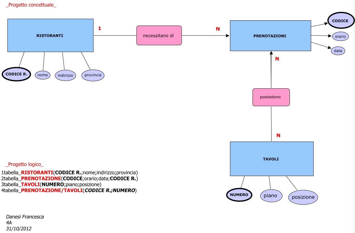 Questa Cmap, creata con IHMC CmapTools, contiene informazioni relative a: Danesi Francesca verifica, PRENOTAZIONI possiedono, PRENOTAZIONI ???? data, TAVOLI ???? posizione, PRENOTAZIONI ???? CODICE, TAVOLI ???? piano, RISTORANTI ???? indirizzo, TAVOLI ???? NUMERO, RISTORANTI necessitano di PRENOTAZIONI, PRENOTAZIONI ???? orario, PRENOTAZIONI possiedono TAVOLI, RISTORANTI ???? provincia, RISTORANTI ???? CODICE R., RISTORANTI ???? nome