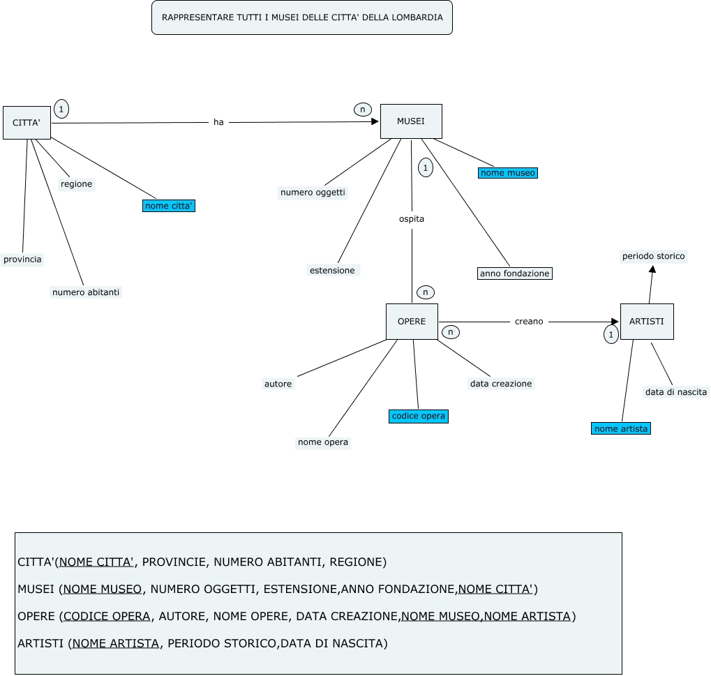 Questa Cmap, creata con IHMC CmapTools, contiene informazioni relative a: musei e citta martina ongaro, MUSEI ospita OPERE, CITTA' ???? regione, CITTA' ???? nome citta', ARTISTI ???? periodo storico, MUSEI ???? anno fondazione, ARTISTI ???? nome artista, OPERE creano ARTISTI, MUSEI ???? estensione, OPERE ???? codice opera, MUSEI ???? numero oggetti, OPERE ???? nome opera, OPERE ???? data creazione, CITTA' ???? provincia, CITTA' ???? numero abitanti, CITTA' ha MUSEI, ARTISTI ???? data di nascita, MUSEI ???? nome museo, OPERE ???? autore