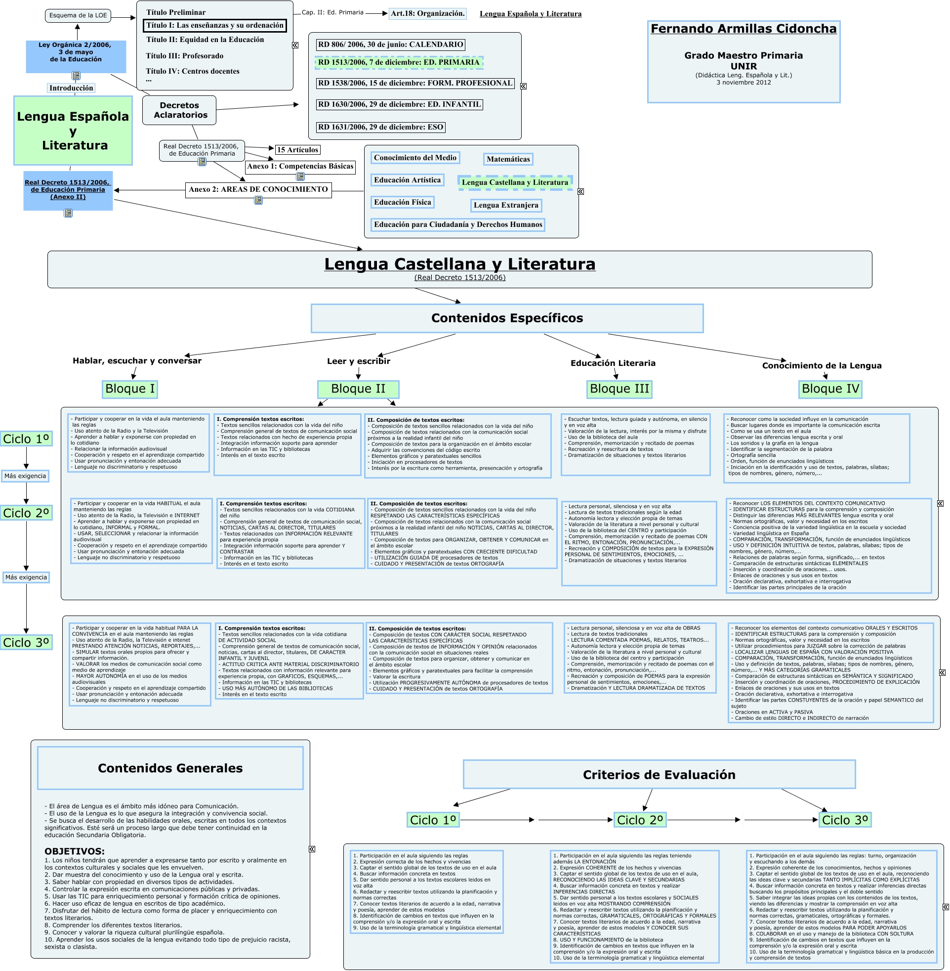 Este Cmap, tiene información relacionada con: ARMILLAS FERNANDO, Anexo 2: AREAS DE CONOCIMIENTO ????, Lengua Española y Literatura Ley Orgánica 2/2006, 3 de mayo de la Educación Decretos Aclaratorios, Ciclo 2º Más exigencia Ciclo 3º, Lengua Española y Literatura Real Decreto 1513/2006, de Educación Primaria (Anexo II) Lengua Castellana y Literatura (Real Decreto 1513/2006), Real Decreto 1513/2006, de Educación Primaria ???? Anexo 1: Competencias Básicas, Lengua Española y Literatura Ley Orgánica 2/2006, 3 de mayo de la Educación Esquema de la LOE, Áreas de Conocimiento de Primaria ???? Anexo 2: AREAS DE CONOCIMIENTO, Bloque II ???? ????, Criterios de Evaluación ???? ????, Ciclo 1º Ciclo 2º, Contenidos Específicos Conocimiento de la Lengua Bloque IV, Contenidos Específicos Leer y escribir Bloque II, Real Decreto 1513/2006, de Educación Primaria ???? Anexo 2: AREAS DE CONOCIMIENTO, Lengua Castellana y Literatura (Real Decreto 1513/2006) ???? Contenidos Específicos, Criterios de Evaluación ???? ????, Real Decreto 1513/2006, de Educación Primaria ???? 15 Artículos, ???? Cap. II: Ed. Primaria Art.18: Organización., Decretos Aclaratorios ????, Contenidos Específicos Hablar, escuchar y conversar Bloque I, Ciclo 1º Ciclo 2º