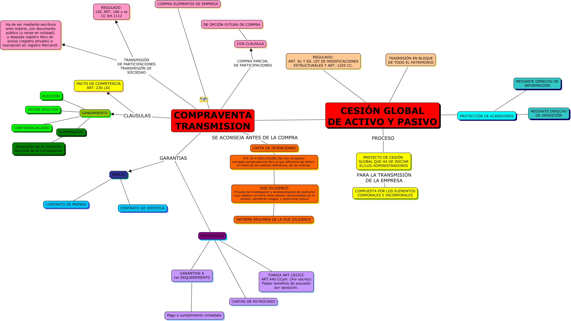 Este Cmap, tiene información relacionada con: La Repartidora, DUE DILIGENCE: Proceso de investigación y analisis(especie de auditoria) cuyo objetivo es entre otros valorar oportunidades de in- versión, identificar riesgos, y determinar precio. ???? INFORME RESUMEN DE LA DUE DILIGENCE, COMPRAVENTA TRANSMISION ???? COMPRA ELEMENTOS DE EMPRESA, SANEAMIENTO ???? SUSPENSIVAS, CON CLAUSULA ???? DE OPCIÓN FUTURA DE COMPRA, COMPRAVENTA TRANSMISION GARANTIAS PERSONALES, COMPRAVENTA TRANSMISION COMPRA PARCIAL DE PARTICIPACIONES CON CLAUSULA, PERSONALES ???? CARTAS DE PATROCINIO, COMPRAVENTA TRANSMISION GARANTIAS REALES, COMPRAVENTA TRANSMISION TRANSMISIÓN DE PARTICIPACIONES TRANSMISIÓN DE SOCIEDAD Ha de ser mediante escritura ante notario, con documento público (o recae en nulidad). y despúes registro libro de socios (registro privado) e inscripción en registro Mercantil., PROTECCIÓN DE ACREEDORES ???? MEDIANTE DERECHO DE OPOSICIÓN, COMPRAVENTA TRANSMISION CLAUSULAS SANEAMIENTO, CESIÓN GLOBAL DE ACTIVO Y PASIVO ???? REGULADO: ART. 81 Y SS. LEY DE MODIFICACIONES ESTRUCTURALES Y ART. 1205 CC., GARANTIAS A 1er.REQUERIMIENTO ???? Pago o cumplimiento inmediato, PERSONALES ???? FIANZA ART.1822CC ART.440 CCom. (Por escrito) Fiador beneficio de excusión por oposición., STS 20-4-2001,RJ5282,(No hay verdadero concepto jurisprudencial.Pero si que diferencia las letters of intent de los contrato definitivos, de las orfertas. ???? DUE DILIGENCE: Proceso de investigación y analisis(especie de auditoria) cuyo objetivo es entre otros valorar oportunidades de in- versión, identificar riesgos, y determinar precio., COMPRAVENTA TRANSMISION CLAUSULAS PACTO DE COMPETENCIA ART. 230 LSC, CESIÓN GLOBAL DE ACTIVO Y PASIVO PROCESO PROYECTO DE CESIÓN GLOBAL QUE HA DE INICIAR EL/LOS ADMINISTRADORES, SUSPENSIVAS ???? Resolución de la Comisión Nacional de la Competencia, CARTA DE INTENCIONES ???? STS 20-4-2001,RJ5282,(No hay verdadero concepto jurisprudencial.Pero si que diferencia las letters of intent de los contrato definitivos, de las orfertas., REALES ???? CONTRATO DE HIPOTECA