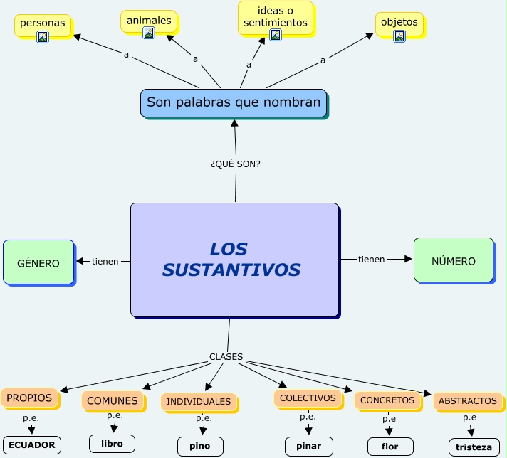 Este Cmap, tiene información relacionada con: SUSTANTIVOS_5º EP, Son palabras que nombran a personas, LOS SUSTANTIVOS CLASES ABSTRACTOS, LOS SUSTANTIVOS ¿QUÉ SON? Son palabras que nombran, Son palabras que nombran a animales, Son palabras que nombran a objetos, LOS SUSTANTIVOS CLASES INDIVIDUALES, Son palabras que nombran a ideas o sentimientos, ABSTRACTOS p.e tristeza, PROPIOS p.e. ECUADOR, LOS SUSTANTIVOS CLASES COLECTIVOS, LOS SUSTANTIVOS CLASES PROPIOS, LOS SUSTANTIVOS tienen GÉNERO, INDIVIDUALES p.e. pino, LOS SUSTANTIVOS tienen NÚMERO, COLECTIVOS p.e. pinar, LOS SUSTANTIVOS CLASES CONCRETOS, COMUNES p.e. libro, CONCRETOS p.e flor, LOS SUSTANTIVOS CLASES COMUNES