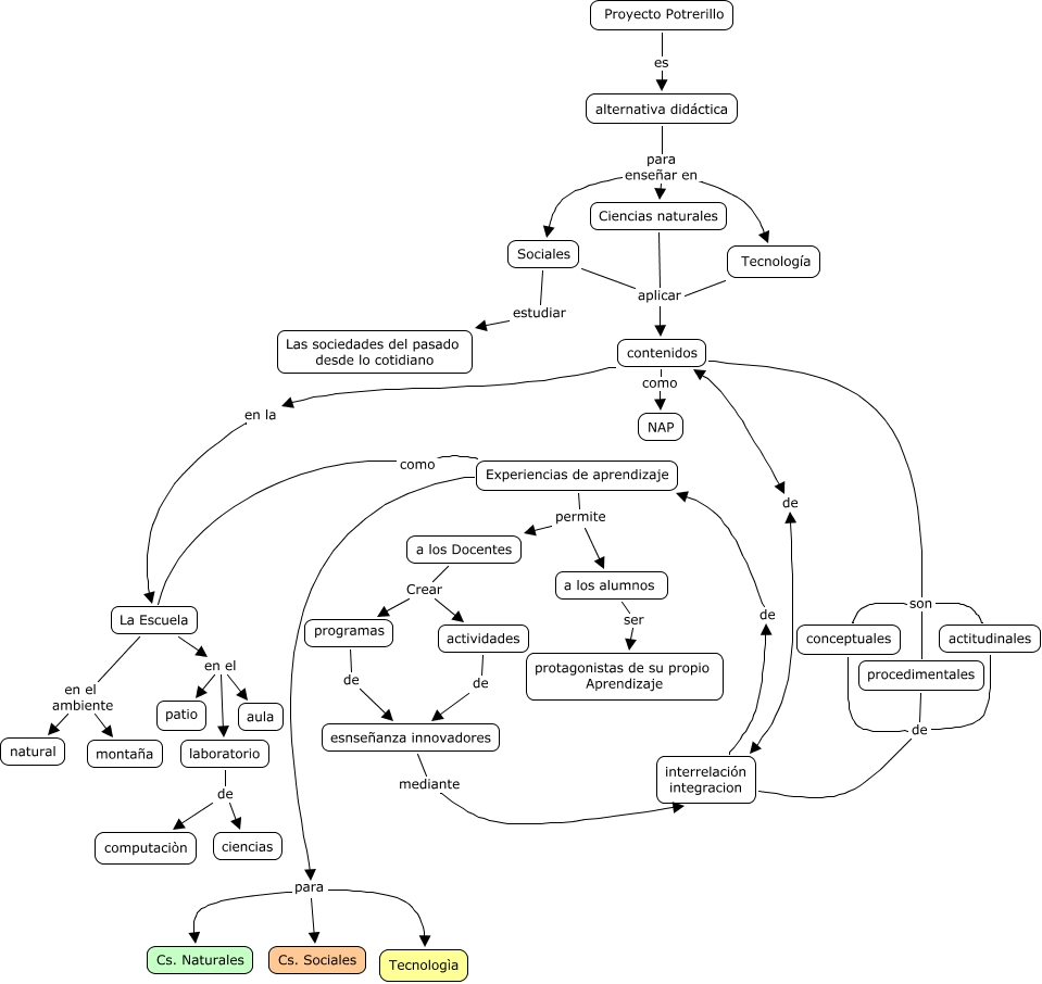 Este Cmap, tiene información relacionada con: Potrerillo folleto con Areas, Experiencias de aprendizaje para Cs. Naturales, contenidos en la La Escuela, actividades de esnseñanza innovadores, Sociales estudiar Las sociedades del pasado desde lo cotidiano, Experiencias de aprendizaje para Tecnologìa, laboratorio de ciencias, programas de esnseñanza innovadores, contenidos son actitudinales, Ciencias naturales aplicar contenidos, a los Docentes Crear programas, Sociales aplicar contenidos, Experiencias de aprendizaje para Cs. Sociales, contenidos de interrelación integracion, La Escuela en el laboratorio, La Escuela en el ambiente montaña, Experiencias de aprendizaje permite a los Docentes, a los alumnos ser protagonistas de su propio Aprendizaje, La Escuela en el aula, La Escuela en el ambiente natural, Proyecto Potrerillo es alternativa didáctica