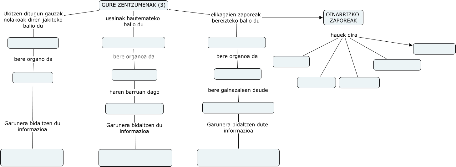 IHMC CmapTools-ekin sortu den kontzeptu-mapa honek honi buruzko informazioa du: Gure zentumenak (3) Ukimena,Usaimena,Dastamena (Zuria), GURE ZENTZUMENAK (3) elikagaien zaporeak bereizteko balio du, Garunera bidaltzen du informazioa, Garunera bidaltzen dute informazioa, OINARRIZKO ZAPOREAK hauek dira, bere organoa da, GURE ZENTZUMENAK (3) usainak hautemateko balio du, GURE ZENTZUMENAK (3) elikagaien zaporeak bereizteko balio du OINARRIZKO ZAPOREAK, Garunera bidaltzen du informazioa, haren barruan dago, OINARRIZKO ZAPOREAK hauek dira, bere organo da, GURE ZENTZUMENAK (3) Ukitzen ditugun gauzak nolakoak diren jakiteko balio du, bere gainazalean daude, OINARRIZKO ZAPOREAK hauek dira, OINARRIZKO ZAPOREAK hauek dira, OINARRIZKO ZAPOREAK hauek dira, bere organoa da