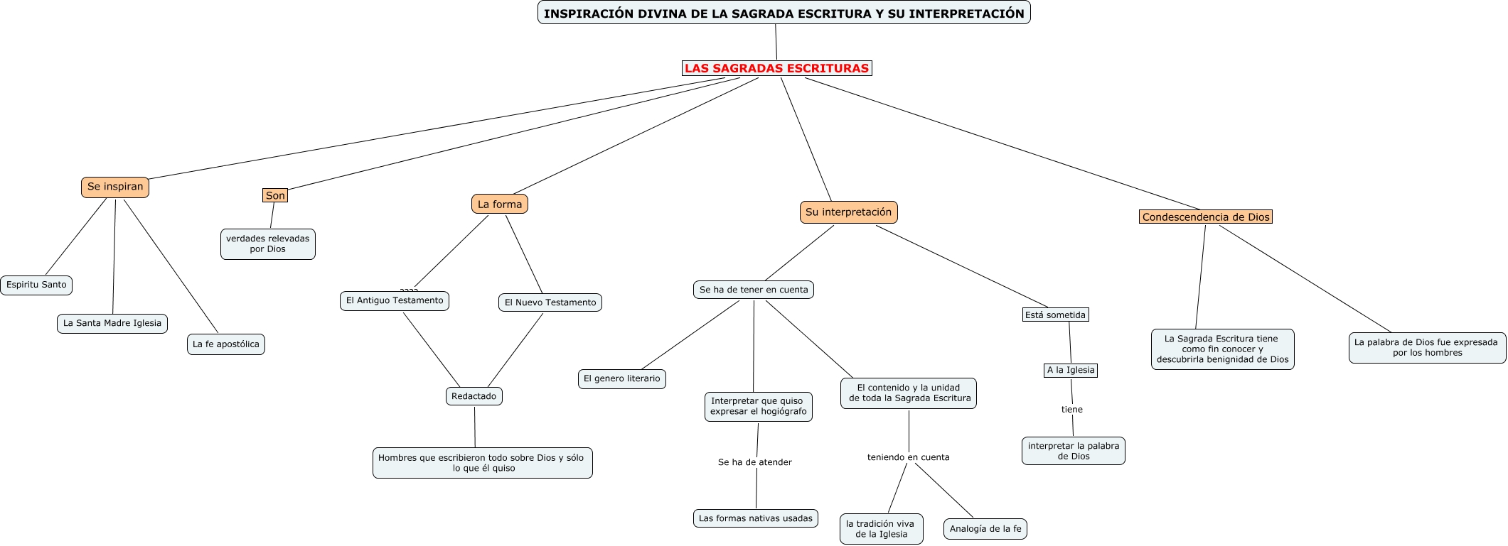 This Concept Map, created with IHMC CmapTools, has information related to: Capitulo III, Interpretar que quiso expresar el hogiógrafo Se ha de atender Las formas nativas usadas, Su interpretación ???? Se ha de tener en cuenta, INSPIRACIÓN DIVINA DE LA SAGRADA ESCRITURA Y SU INTERPRETACIÓN ???? LAS SAGRADAS ESCRITURAS, Se ha de tener en cuenta ???? El contenido y la unidad de toda la Sagrada Escritura, LAS SAGRADAS ESCRITURAS ???? Son, Condescendencia de Dios ???? La Sagrada Escritura tiene como fin conocer y descubrirla benignidad de Dios, Su interpretación ???? Está sometida, Se inspiran ???? La Santa Madre Iglesia, Condescendencia de Dios ???? La palabra de Dios fue expresada por los hombres, La forma ???? El Antiguo Testamento, LAS SAGRADAS ESCRITURAS ???? Su interpretación, El Antiguo Testamento ???? Redactado, Se inspiran ???? La fe apostólica, Se ha de tener en cuenta ???? El genero literario, Se ha de tener en cuenta ???? Interpretar que quiso expresar el hogiógrafo, Está sometida ???? A la Iglesia, El Nuevo Testamento ???? Redactado, El contenido y la unidad de toda la Sagrada Escritura teniendo en cuenta la tradición viva de la Iglesia, A la Iglesia tiene interpretar la palabra de Dios, LAS SAGRADAS ESCRITURAS ???? La forma