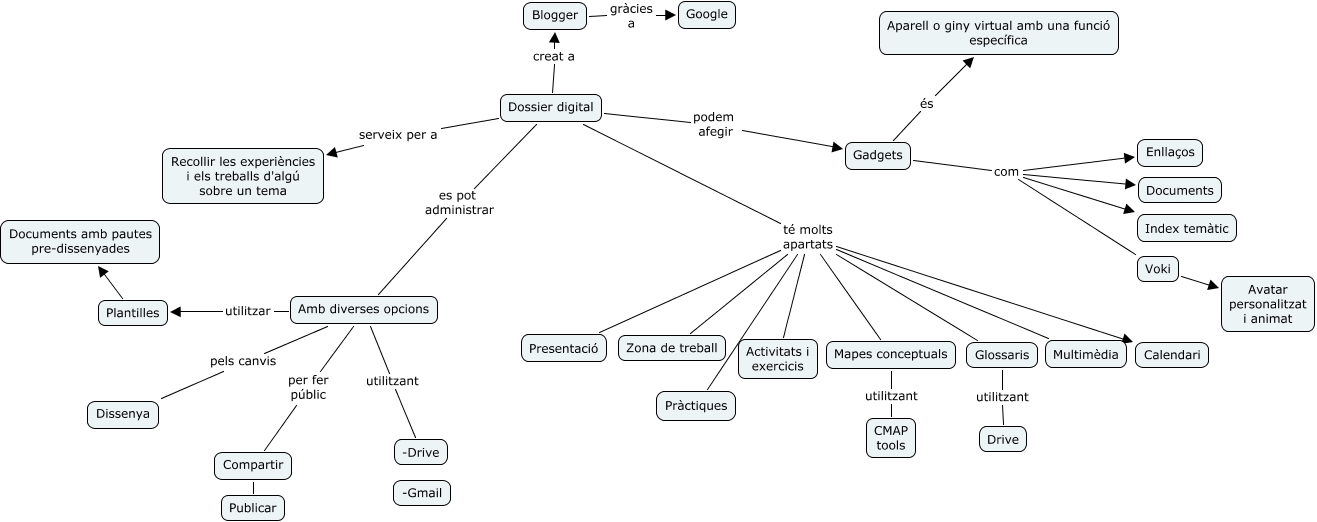 Este Cmap, tiene información relacionada con: Mapa conceptual 0, Dossier digital té molts apartats Activitats i exercicis, Mapes conceptuals utilitzant CMAP tools, Dossier digital creat a Blogger, Amb diverses opcions utilitzar Plantilles, Amb diverses opcions pels canvis Dissenya, Dossier digital té molts apartats Multimèdia, Dossier digital serveix per a Recollir les experiències i els treballs d'algú sobre un tema, Gadgets com Documents, Plantilles Documents amb pautes pre-dissenyades, Dossier digital es pot administrar Amb diverses opcions, Amb diverses opcions utilitzant -Drive, Voki Avatar personalitzat i animat, Dossier digital té molts apartats Zona de treball, Dossier digital té molts apartats Mapes conceptuals, Gadgets és Aparell o giny virtual amb una funció específica, Dossier digital té molts apartats Presentació, Gadgets com Voki, Dossier digital té molts apartats Calendari, Gadgets com Enllaços, Dossier digital podem afegir Gadgets