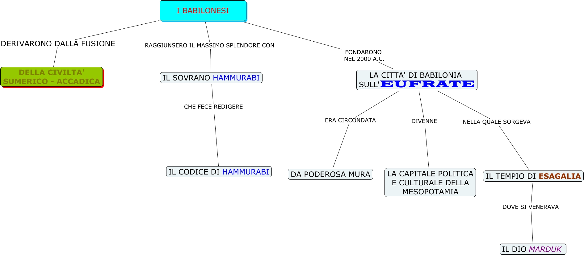 Questa Cmap, creata con IHMC CmapTools, contiene informazioni relative a: Senza titolo 1, IL TEMPIO DI ESAGALIA DOVE SI VENERAVA IL DIO MARDUK, LA CITTA' DI BABILONIA SULL'EUFRATE ERA CIRCONDATA DA PODEROSA MURA, LA CITTA' DI BABILONIA SULL'EUFRATE DIVENNE LA CAPITALE POLITICA E CULTURALE DELLA MESOPOTAMIA, I BABILONESI FONDARONO NEL 2000 A.C. LA CITTA' DI BABILONIA SULL'EUFRATE, I BABILONESI DERIVARONO DALLA FUSIONE DELLA CIVILTA' SUMERICO - ACCADICA, LA CITTA' DI BABILONIA SULL'EUFRATE NELLA QUALE SORGEVA IL TEMPIO DI ESAGALIA, I BABILONESI RAGGIUNSERO IL MASSIMO SPLENDORE CON IL SOVRANO HAMMURABI, IL SOVRANO HAMMURABI CHE FECE REDIGERE IL CODICE DI HAMMURABI