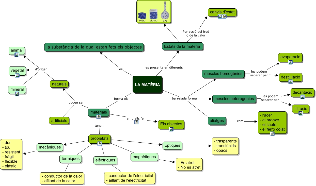 Este Cmap, tiene información relacionada con: La matèria, aliatges com - l'acer - el bronze - el llautó - el ferro colat, mescles heterogènies les podem separar per decantació, mescles heterogènies les podem separar per filtració, Estats de la matèria, propietats elèctriques, naturals d'origen vegetal, LA MATÈRIA forma els materials, mecàniques - dur - tou - resistent - fràgil - flexible - elàstic, tèrmiques - conductor de la calor - aïllant de la calor, propietats magnètiques, materials poden ser naturals, Estats de la matèria Per acció del fred o de la calor canvis d'estat, materials poden ser artificials, LA MATÈRIA es presenta en diferents Estats de la matèria, propietats mecàniques, LA MATÈRIA barrejada forma mescles homogènies, naturals d'origen mineral, LA MATÈRIA és la substància de la qual estan fets els objectes, LA MATÈRIA barrejada forma aliatges, materials amb ells fem Els objectes