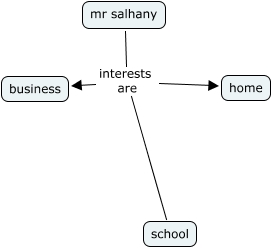 This Concept Map, created with IHMC CmapTools, has information related to: 77731000000000000000000000, mr salhany interests are business, mr salhany interests are school, mr salhany interests are home