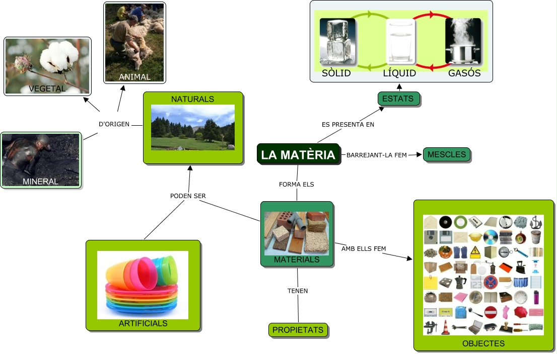 Este Cmap, tiene información relacionada con: la matèria mini, LA MATÈRIA BARREJANT-LA FEM MESCLES, MATERIALS TENEN PROPIETATS, NATURALS D'ORIGEN ANIMAL, LA MATÈRIA ES PRESENTA EN ESTATS, MATERIALS PODEN SER ARTIFICIALS, NATURALS D'ORIGEN MINERAL, NATURALS D'ORIGEN VEGETAL, LA MATÈRIA FORMA ELS MATERIALS, MATERIALS PODEN SER NATURALS, ESTATS SÒLID LÍQUID GASÓS, MATERIALS AMB ELLS FEM OBJECTES