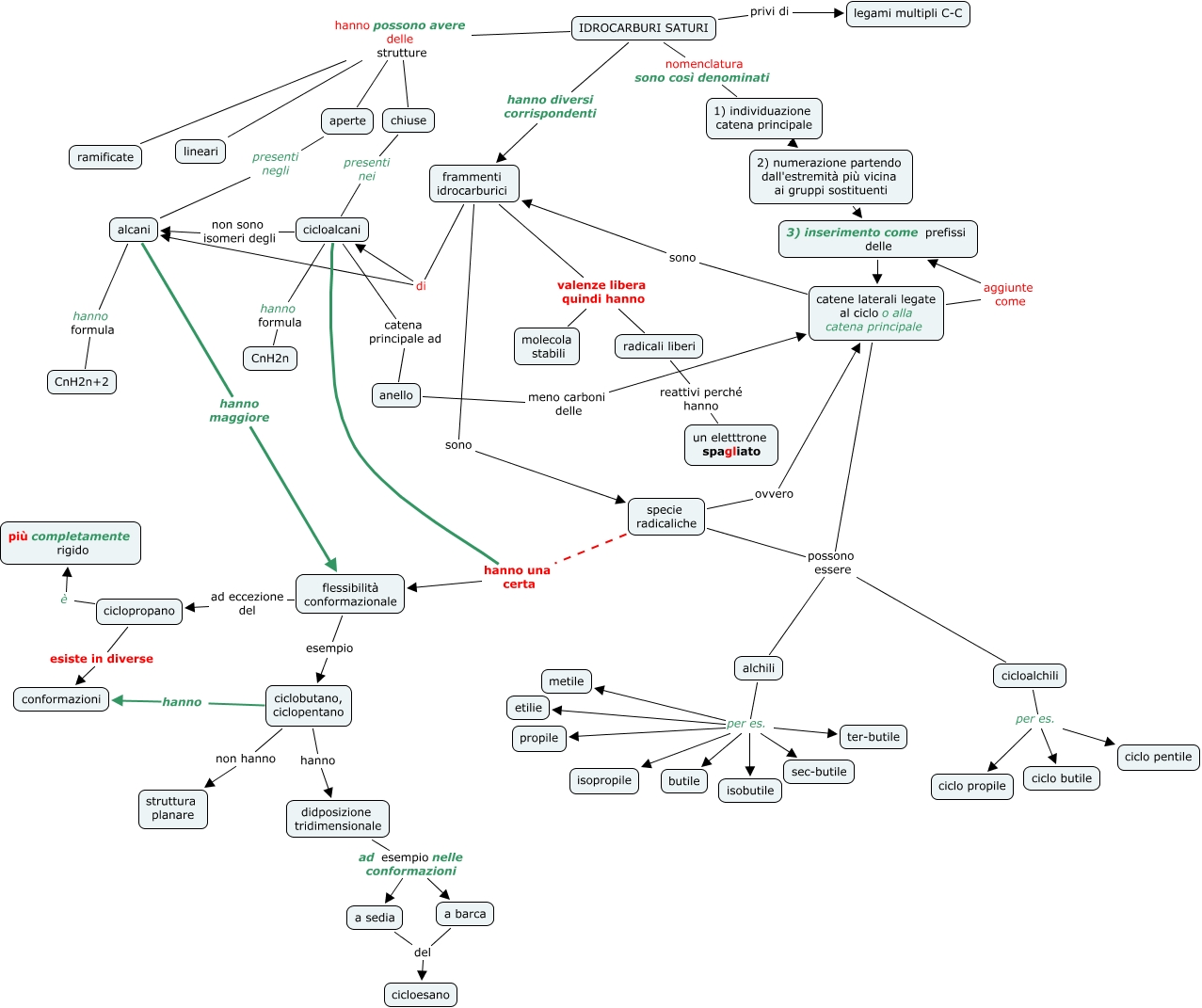 Questa Cmap, creata con IHMC CmapTools, contiene informazioni relative a: Alcani & cicloalcaniRM rev, catene laterali legate al ciclo o alla catena principale possono essere cicloalchili, alcani hanno maggiore flessibilità conformazionale, frammenti idrocarburici sono specie radicaliche, a barca del cicloesano, IDROCARBURI SATURI hanno possono avere delle strutture ramificate, ciclopropano esiste in diverse conformazioni, alchili per es. isopropile, radicali liberi reattivi perché hanno un eletttrone spagliato, cicloalchili per es. ciclo butile, alchili per es. sec-butile, frammenti idrocarburici valenze libera quindi hanno radicali liberi, aperte presenti negli alcani, frammenti idrocarburici valenze libera quindi hanno molecola stabili, cicloalcani catena principale ad anello, ciclobutano, ciclopentano non hanno struttura planare, specie radicaliche ovvero catene laterali legate al ciclo o alla catena principale, ciclobutano, ciclopentano hanno didposizione tridimensionale, IDROCARBURI SATURI nomenclatura sono così denominati 1) individuazione catena principale, ciclopropano è più completamente rigido, chiuse presenti nei cicloalcani