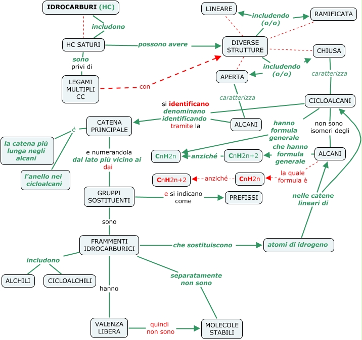 Questa Cmap, creata con IHMC CmapTools, contiene informazioni relative a: MappaIdrocarburi Forconi Rev, GRUPPI SOSTITUENTI e si indicano come PREFISSI, atomi di idrogeno nelle catene lineari di ALCANI, CATENA PRINCIPALE e numerandola dal lato più vicino ai dai GRUPPI SOSTITUENTI, CATENA PRINCIPALE è l'anello nei cicloalcani, CATENA PRINCIPALE è la catena più lunga negli alcani, DIVERSE STRUTTURE includendo (o/o) RAMIFICATA, GRUPPI SOSTITUENTI sono FRAMMENTI IDROCARBURICI, atomi di idrogeno nelle catene lineari di CICLOALCANI, VALENZA LIBERA quindi non sono MOLECOLE STABILI, CICLOALCANI hanno formula generale <math xmlns="http://www.w3.org/1998/Math/MathML"> <mtext> CnH2n </mtext> </math>, DIVERSE STRUTTURE includendo (o/o) APERTA, APERTA caratterizza ALCANI, ALCANI si identificano denominano identificando tramite la CATENA PRINCIPALE, HC SATURI possono avere DIVERSE STRUTTURE, LEGAMI MULTIPLI CC con DIVERSE STRUTTURE, <math xmlns="http://www.w3.org/1998/Math/MathML"> <mtext> CnH2n </mtext> </math> anziché CnH2n+2, IDROCARBURI (HC) ???? HC SATURI, ALCANI la quale formula è <math xmlns="http://www.w3.org/1998/Math/MathML"> <mtext> CnH2n </mtext> </math>, LINEARE ???? DIVERSE STRUTTURE, FRAMMENTI IDROCARBURICI includono ALCHILI