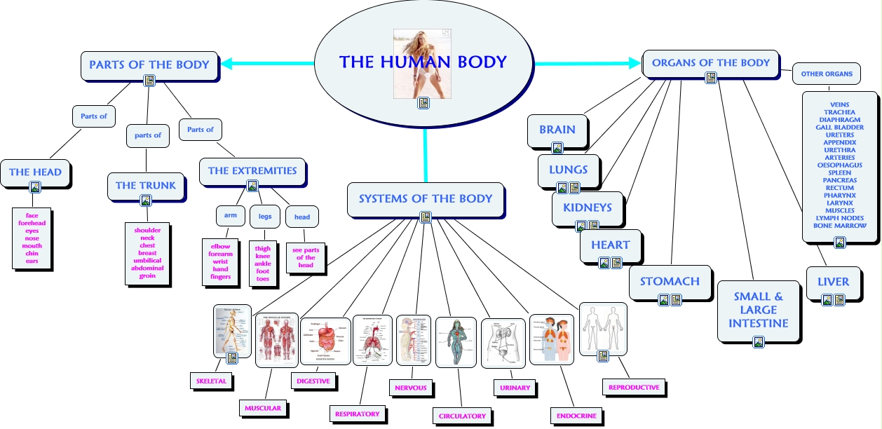 This Concept Map, created with IHMC CmapTools, has information related to: THE HUMAN BODY, SYSTEMS OF THE BODY SKELETAL, THE HUMAN BODY ???? SYSTEMS OF THE BODY, SYSTEMS OF THE BODY REPRODUCTIVE, ORGANS OF THE BODY major BRAIN, ORGANS OF THE BODY ???? HEART, ORGANS OF THE BODY ???? SMALL & LARGE INTESTINE, PARTS OF THE BODY Parts of THE HEAD, STOMACH ???? ORGANS OF THE BODY, THE TRUNK ???? shoulder neck chest breast umbilical abdominal groin, SYSTEMS OF THE BODY NERVOUS, ORGANS OF THE BODY ???? KIDNEYS, SYSTEMS OF THE BODY DIGESTIVE, THE HUMAN BODY ???? ORGANS OF THE BODY, SYSTEMS OF THE BODY CIRCULATORY, SYSTEMS OF THE BODY MUSCULAR, THE HEAD ???? face forehead eyes nose mouth chin ears, ORGANS OF THE BODY ???? LUNGS, SYSTEMS OF THE BODY URINARY, PARTS OF THE BODY Parts of THE EXTREMITIES, PARTS OF THE BODY ???? THE TRUNK
