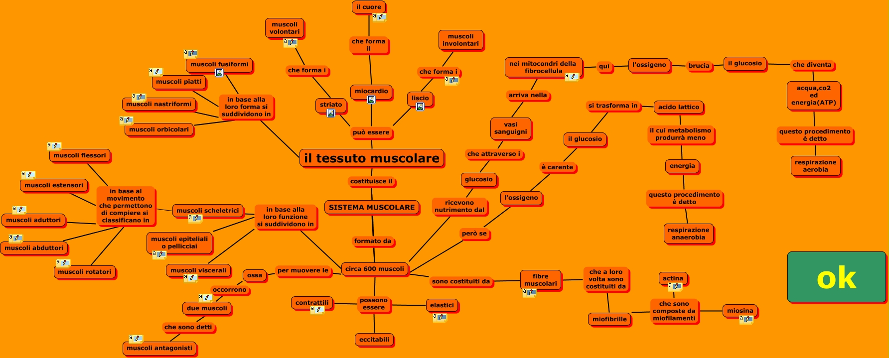 Questa Cmap, creata con IHMC CmapTools, contiene informazioni relative a: il sistema muscolare, muscoli piatti in base alla loro forma si suddividono in il tessuto muscolare, energia il cui metabolismo produrrà meno acido lattico, il glucosio brucia l'ossigeno, muscoli estensori in base al movimento che permettono di compiere si classificano in muscoli scheletrici, muscoli volontari che forma i striato, glucosio ricevono nutrimento dal circa 600 muscoli, muscoli involontari che forma i liscio, contrattili possono essere elastici, eccitabili possono essere circa 600 muscoli, il glucosio si trasforma in acido lattico, striato può essere il tessuto muscolare, respirazione anaerobia questo procedimento è detto energia, circa 600 muscoli costituisce il SISTEMA MUSCOLARE, circa 600 muscoli sono costituiti da fibre muscolari, contrattili possono essere circa 600 muscoli, l'ossigeno qui nei mitocondri della fibrocellula, il glucosio è carente l'ossigeno, SISTEMA MUSCOLARE formato da circa 600 muscoli, respirazione aerobia questo procedimento è detto acqua,co2 ed energia(ATP), il cuore che forma il miocardio