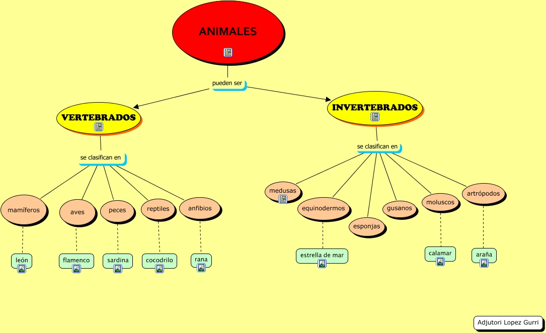 Este Cmap, tiene información relacionada con: Animales vertebrados e invertebrados, se clasifican en anfibios rana, INVERTEBRADOS se clasifican en gusanos, se clasifican en peces sardina, INVERTEBRADOS se clasifican en artrópodos, se clasifican en ???? flamenco, ANIMALES pueden ser INVERTEBRADOS, VERTEBRADOS ???? se clasifican en, INVERTEBRADOS se clasifican en esponjas, ANIMALES pueden ser VERTEBRADOS, moluscos ???? calamar, equinodermos ???? estrella de mar, INVERTEBRADOS se clasifican en medusas, INVERTEBRADOS se clasifican en equinodermos, artrópodos ???? araña, ANIMALES pueden ser INVERTEBRADOS, INVERTEBRADOS se clasifican en moluscos, ANIMALES pueden ser VERTEBRADOS, se clasifican en mamíferos león, se clasifican en reptiles cocodrilo