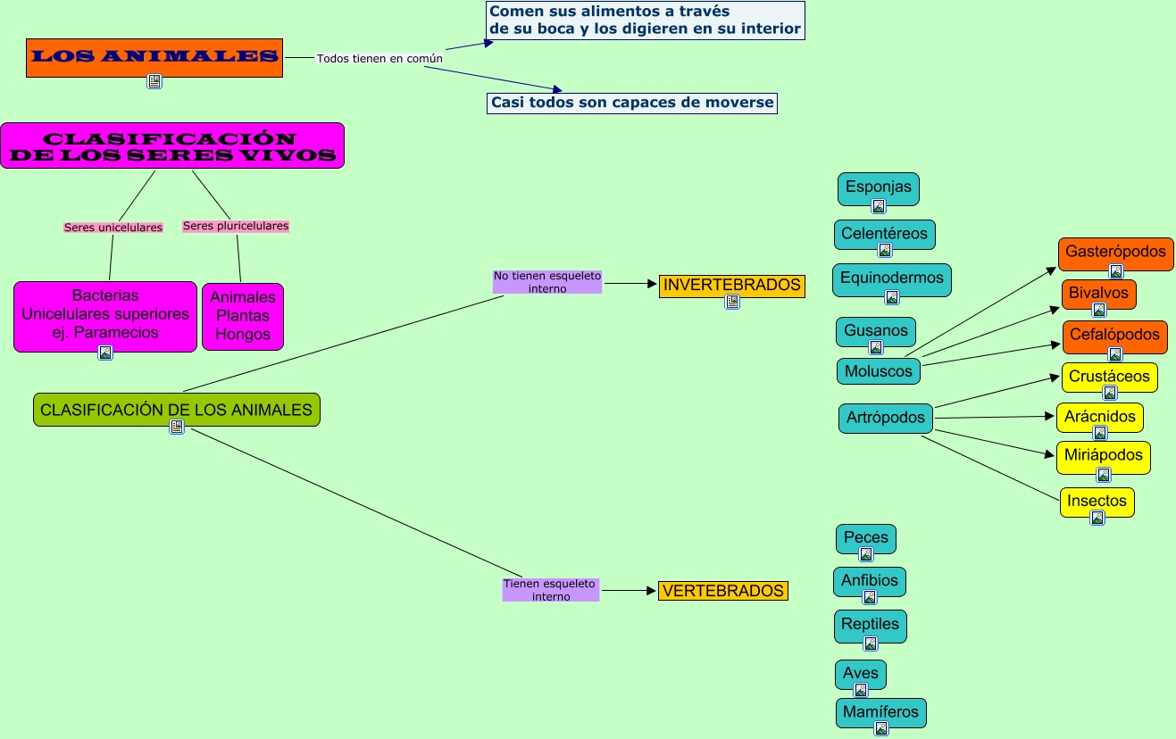 Este Cmap, tiene información relacionada con: LOS ANIMALES, Artrópodos Insectos, LOS ANIMALES Todos tienen en común Casi todos son capaces de moverse, Artrópodos Miriápodos, Moluscos Gasterópodos, CLASIFICACIÓN DE LOS ANIMALES No tienen esqueleto interno INVERTEBRADOS, CLASIFICACIÓN DE LOS ANIMALES Tienen esqueleto interno VERTEBRADOS, CLASIFICACIÓN DE LOS SERES VIVOS Seres unicelulares Bacterias Unicelulares superiores ej. Paramecios, Moluscos Cefalópodos, Artrópodos Arácnidos, LOS ANIMALES Todos tienen en común Comen sus alimentos a través de su boca y los digieren en su interior, CLASIFICACIÓN DE LOS SERES VIVOS Seres pluricelulares Animales Plantas Hongos, Artrópodos Crustáceos, Moluscos Bivalvos
