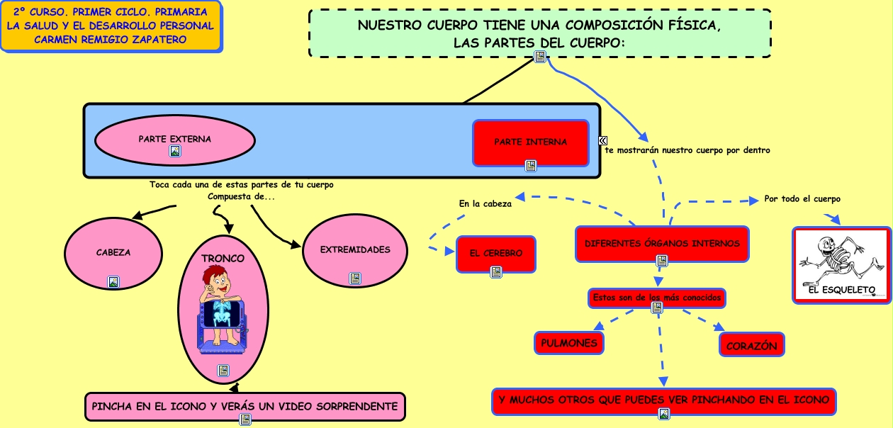 Este Cmap, tiene información relacionada con: CUERPO HUMANO, DIFERENTES ÓRGANOS INTERNOS Estos son de los más conocidos PULMONES, En la cabeza EL CEREBRO, NUESTRO CUERPO TIENE UNA COMPOSICIÓN FÍSICA, LAS PARTES DEL CUERPO: Toca cada una de estas partes de tu cuerpo Compuesta de... TRONCO, TRONCO, NUESTRO CUERPO TIENE UNA COMPOSICIÓN FÍSICA, LAS PARTES DEL CUERPO: Sigue las líneas y te mostrarán nuestro cuerpo por dentro, NUESTRO CUERPO TIENE UNA COMPOSICIÓN FÍSICA, LAS PARTES DEL CUERPO: Toca cada una de estas partes de tu cuerpo Compuesta de... EXTREMIDADES, DIFERENTES ÓRGANOS INTERNOS Por todo el cuerpo EL ESQUELETO, DIFERENTES ÓRGANOS INTERNOS Estos son de los más conocidos Y MUCHOS OTROS QUE PUEDES VER PINCHANDO EN EL ICONO, NUESTRO CUERPO TIENE UNA COMPOSICIÓN FÍSICA, LAS PARTES DEL CUERPO: Toca cada una de estas partes de tu cuerpo Compuesta de... CABEZA, DIFERENTES ÓRGANOS INTERNOS Estos son de los más conocidos CORAZÓN