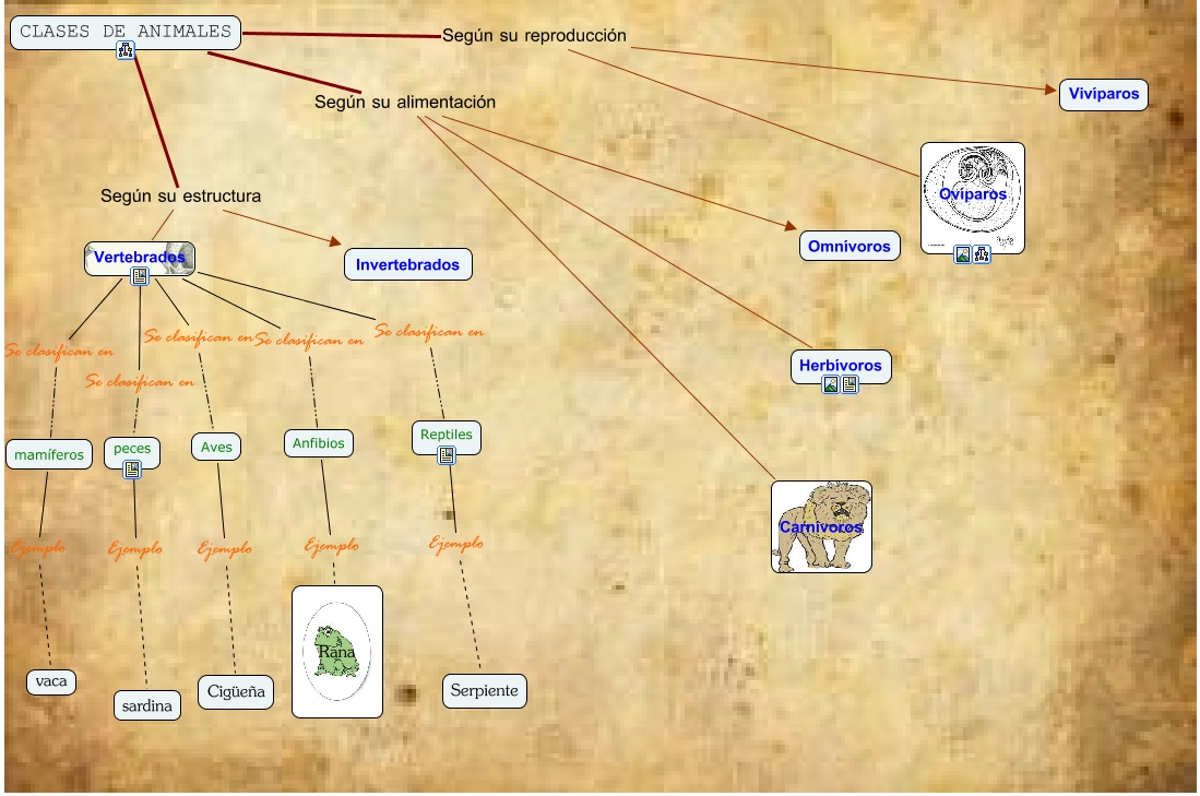 Este Cmap, tiene información relacionada con: MAPA CONCEPTUAL, Vertebrados Se clasifican en mamíferos, CLASES DE ANIMALES Según su estructura Invertebrados, Vertebrados Se clasifican en Aves, CLASES DE ANIMALES Según su reproducción Ovíparos, Vertebrados Se clasifican en peces, CLASES DE ANIMALES Según su alimentación Herbívoros, Vertebrados Se clasifican en Reptiles, Anfibios Ejemplo Rana, peces Ejemplo sardina, mamíferos Ejemplo vaca, CLASES DE ANIMALES Según su alimentación Omnívoros, Vertebrados Se clasifican en Anfibios, CLASES DE ANIMALES Según su estructura Vertebrados, Aves Ejemplo Cigüeña, Reptiles Ejemplo Serpiente, CLASES DE ANIMALES Según su reproducción Vivíparos, CLASES DE ANIMALES Según su alimentación Carnívoros