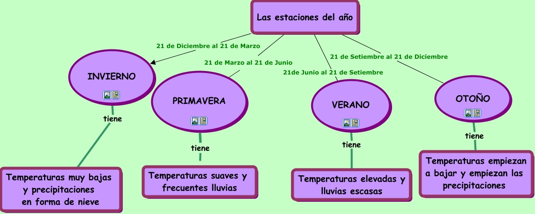 Este Cmap, tiene información relacionada con: Sin Título 3, OTOÑO tiene Temperaturas empiezan a bajar y empiezan las precipitaciones, Las estaciones del año 21 de Diciembre al 21 de Marzo INVIERNO, Las estaciones del año 21de Junio al 21 de Setiembre VERANO, Las estaciones del año 21 de Marzo al 21 de Junio PRIMAVERA, Las estaciones del año 21 de Setiembre al 21 de Diciembre OTOÑO, INVIERNO tiene Temperaturas muy bajas y precipitaciones en forma de nieve, VERANO tiene Temperaturas elevadas y lluvias escasas, PRIMAVERA tiene Temperaturas suaves y frecuentes lluvias