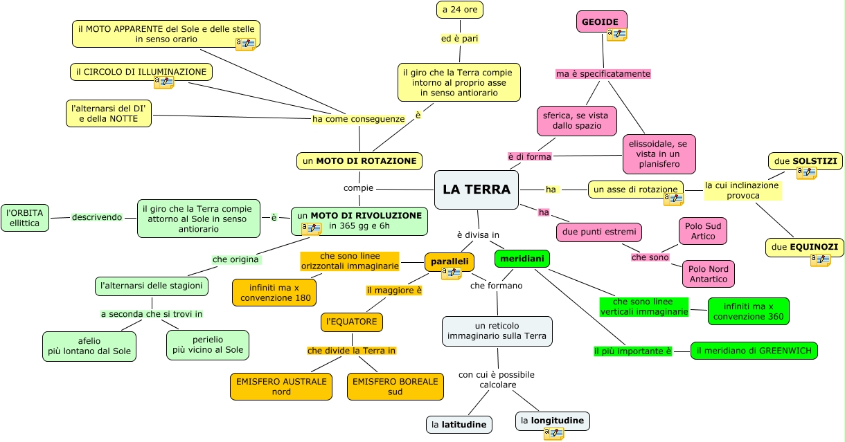 Questa Cmap, creata con IHMC CmapTools, contiene informazioni relative a: terra, LA TERRA compie un MOTO DI RIVOLUZIONE in 365 gg e 6h, LA TERRA ha due punti estremi, l'EQUATORE che divide la Terra in EMISFERO BOREALE sud, LA TERRA ha un asse di rotazione, meridiani il più importante è il meridiano di GREENWICH, LA TERRA è divisa in meridiani, due punti estremi che sono Polo Nord Antartico, la longitudine con cui è possibile calcolare la latitudine, l'alternarsi delle stagioni a seconda che si trovi in afelio più lontano dal Sole, meridiani che sono linee verticali immaginarie infiniti ma x convenzione 360, elissoidale, se vista in un planisfero ma è specificatamente sferica, se vista dallo spazio, paralleli che sono linee orizzontali immaginarie infiniti ma x convenzione 180, paralleli che formano meridiani, un MOTO DI ROTAZIONE ha come conseguenze il CIRCOLO DI ILLUMINAZIONE, l'EQUATORE che divide la Terra in EMISFERO AUSTRALE nord, un MOTO DI ROTAZIONE è il giro che la Terra compie intorno al proprio asse in senso antiorario, un MOTO DI ROTAZIONE ha come conseguenze il MOTO APPARENTE del Sole e delle stelle in senso orario, elissoidale, se vista in un planisfero ma è specificatamente GEOIDE, un MOTO DI ROTAZIONE ha come conseguenze l'alternarsi del DI' e della NOTTE, la longitudine con cui è possibile calcolare un reticolo immaginario sulla Terra