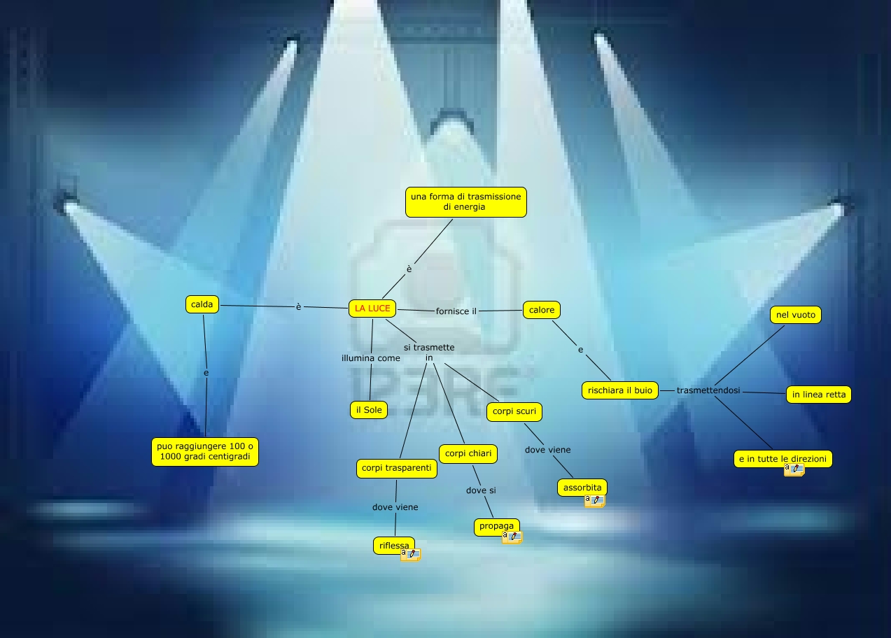 Questa Cmap, creata con IHMC CmapTools, contiene informazioni relative a: La luce, calore e rischiara il buio, calda e puo raggiungere 100 o 1000 gradi centigradi, LA LUCE fornisce il calore, rischiara il buio trasmettendosi in linea retta, rischiara il buio trasmettendosi nel vuoto, corpi trasparenti dove viene riflessa, corpi scuri dove viene assorbita, LA LUCE si trasmette in corpi scuri, LA LUCE si trasmette in corpi chiari, LA LUCE illumina come il Sole, rischiara il buio trasmettendosi e in tutte le direzioni, LA LUCE si trasmette in corpi trasparenti, corpi chiari dove si propaga, LA LUCE è calda, LA LUCE è una forma di trasmissione di energia