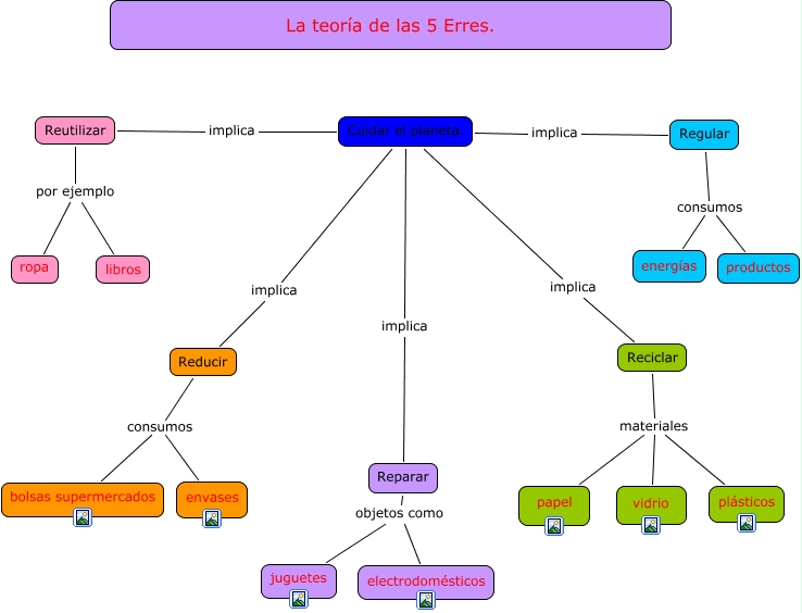 Este Cmap, tiene información relacionada con: Cmap reciclaje, Regular consumos productos, Reciclar materiales plásticos, Reducir consumos envases, Reparar objetos como juguetes, Reducir consumos bolsas supermercados, Cuidar el planeta. implica Reutilizar, Reciclar materiales papel, Cuidar el planeta. implica Reciclar, Reutilizar por ejemplo libros, Reparar objetos como electrodomésticos, Regular consumos energías, Cuidar el planeta. implica Reducir, Cuidar el planeta. implica Reparar, Reutilizar por ejemplo ropa, Reciclar materiales vidrio, Cuidar el planeta. implica Regular