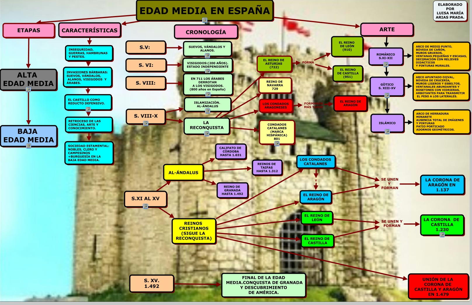 Este Cmap, tiene información relacionada con: EDAD MEDIA, ROMÁNICO S.XI-XII ARCO DE MEDIO PUNTO, BÓVEDA DE CAÑÓN, MUROS GRUESOS, VENTANAS PEQUEÑAS Y ESCASAS, DECORACIÓN CON RELIEVES DIDÁCTICOS Y PINTURAS MURALES., RETROCESO DE LAS CIENCIAS, ARTE Y CONOCIMIENTO. SOCIEDAD ESTAMENTAL: NOBLES, CLERO Y CAMPESINOS +BURGUESÍA EN LA BAJA EDAD MEDIA., LA RECONQUISTA CONDADOS CATALANES (MARCA HISPÁNICA) 801, EL REINO DE ASTURIAS (722) FORMA EL REINO DE LEÓN (910), S.XI AL XV REINOS CRISTIANOS (SIGUE LA RECONQUISTA), REINOS CRISTIANOS (SIGUE LA RECONQUISTA) EL REINO DE CASTILLA, EL REINO DE CASTILLA SE UNEN Y FORMAN LA CORONA DE CASTILLA 1.230, EL REINO DE LEÓN SE UNEN Y FORMAN LA CORONA DE CASTILLA 1.230, S. VI: VISIGODOS:(200 AÑOS). ESTADO INDEPENDIENTE, AL-ÁNDALUS CALIFATO DE CÓRDOBA HASTA 1.031, AL-ÁNDALUS REINOS DE TAIFAS HASTA 1.312, INSEGURIDAD, GUERRAS, HAMBRUNAS Y PESTES. INVASIONES BÁRBARAS: SUEVOS, VÁNDALOS, ALANOS, VISIGODOS Y ÁRABES., AL-ÁNDALUS REINO DE GRANADA HASTA 1.492, ETAPAS ALTA EDAD MEDIA, EDAD MEDIA EN ESPAÑA ARTE, REINOS CRISTIANOS (SIGUE LA RECONQUISTA) EL REINO DE ARAGÓN, S. VIII-X LA RECONQUISTA, REINOS CRISTIANOS (SIGUE LA RECONQUISTA) EL REINO DE LEÓN, CARACTERÍSTICAS INSEGURIDAD, GUERRAS, HAMBRUNAS Y PESTES., ROMÁNICO S.XI-XII GÓTICO S. XIII-XV