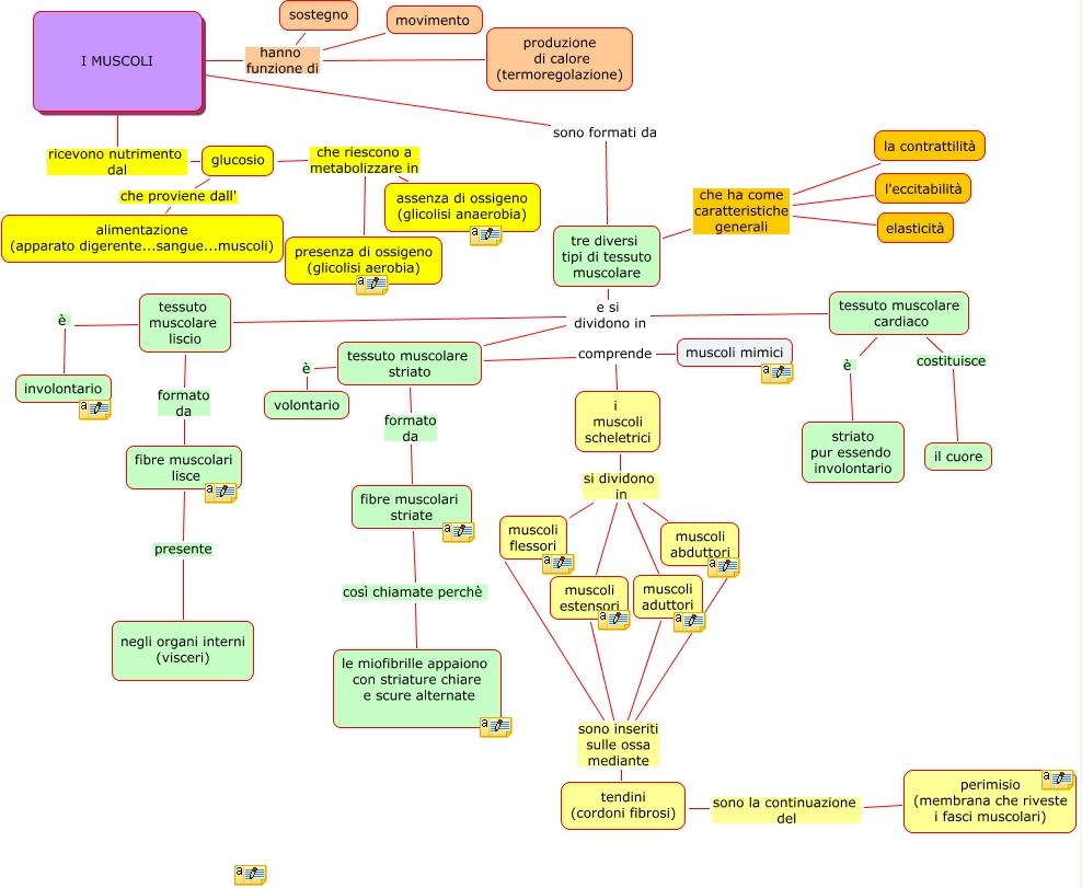 Questa Cmap, creata con IHMC CmapTools, contiene informazioni relative a: muscolare, muscoli aduttori sono inseriti sulle ossa mediante muscoli flessori, muscoli aduttori sono inseriti sulle ossa mediante muscoli estensori, tessuto muscolare liscio formato da fibre muscolari lisce, tessuto muscolare liscio è involontario, muscoli aduttori sono inseriti sulle ossa mediante muscoli abduttori, tessuto muscolare cardiaco è striato pur essendo involontario, glucosio che riescono a metabolizzare in presenza di ossigeno (glicolisi aerobia), tessuto muscolare striato comprende muscoli mimici, tessuto muscolare cardiaco costituisce il cuore, I MUSCOLI sono formati da tre diversi tipi di tessuto muscolare, I MUSCOLI hanno funzione di sostegno, tessuto muscolare striato formato da fibre muscolari striate, tre diversi tipi di tessuto muscolare e si dividono in tessuto muscolare striato, tre diversi tipi di tessuto muscolare che ha come caratteristiche generali elasticità, tre diversi tipi di tessuto muscolare e si dividono in tessuto muscolare liscio, glucosio che proviene dall' alimentazione (apparato digerente...sangue...muscoli), tessuto muscolare striato comprende i muscoli scheletrici, tessuto muscolare striato è volontario, i muscoli scheletrici si dividono in muscoli aduttori, tendini (cordoni fibrosi) sono la continuazione del perimisio (membrana che riveste i fasci muscolari)
