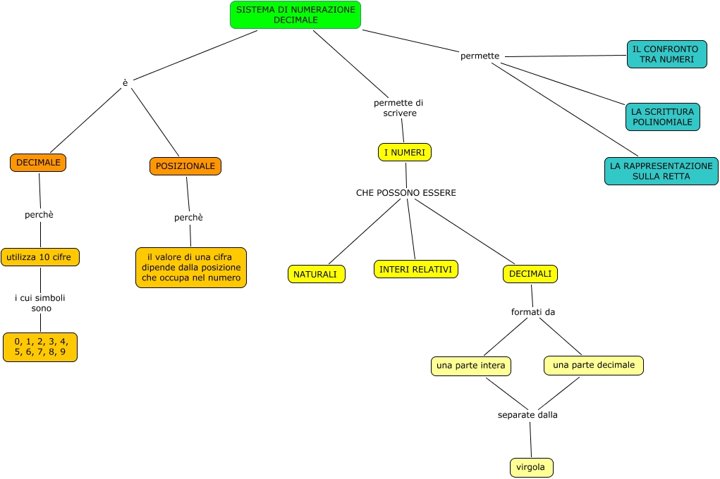 Questa Cmap, creata con IHMC CmapTools, contiene informazioni relative a: SISTEMA DI NUMERAZIONE.cmap, SISTEMA DI NUMERAZIONE DECIMALE permette LA RAPPRESENTAZIONE SULLA RETTA, una parte intera separate dalla virgola, SISTEMA DI NUMERAZIONE DECIMALE permette LA SCRITTURA POLINOMIALE, DECIMALI formati da una parte decimale, SISTEMA DI NUMERAZIONE DECIMALE permette di scrivere I NUMERI, DECIMALI formati da una parte intera, I NUMERI CHE POSSONO ESSERE NATURALI, POSIZIONALE perchè il valore di una cifra dipende dalla posizione che occupa nel numero, SISTEMA DI NUMERAZIONE DECIMALE è DECIMALE, DECIMALE perchè utilizza 10 cifre, SISTEMA DI NUMERAZIONE DECIMALE è POSIZIONALE, I NUMERI CHE POSSONO ESSERE DECIMALI, una parte decimale separate dalla virgola, utilizza 10 cifre i cui simboli sono 0, 1, 2, 3, 4, 5, 6, 7, 8, 9, I NUMERI CHE POSSONO ESSERE INTERI RELATIVI, SISTEMA DI NUMERAZIONE DECIMALE permette IL CONFRONTO TRA NUMERI