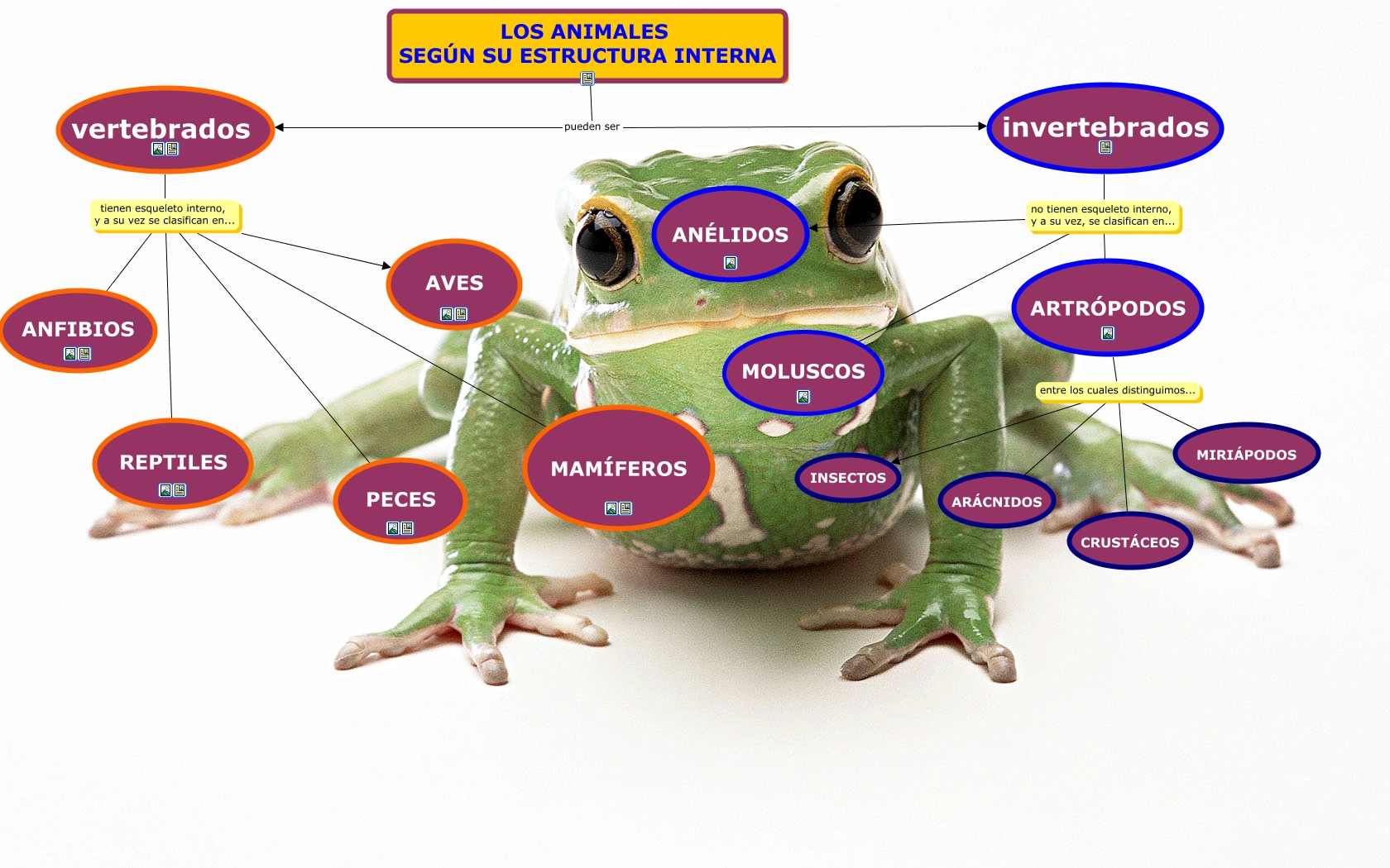 Este Cmap, tiene información relacionada con: mapa conceptual animales 3o primaria. HECHO POR MARINA ARENAS JIMÉNEZ.cmap, vertebrados tienen esqueleto interno, y a su vez se clasifican en... ANFIBIOS, ARTRÓPODOS entre los cuales distinguimos... ARÁCNIDOS, LOS ANIMALES SEGÚN SU ESTRUCTURA INTERNA pueden ser vertebrados, vertebrados tienen esqueleto interno, y a su vez se clasifican en... REPTILES, vertebrados tienen esqueleto interno, y a su vez se clasifican en... MAMÍFEROS, invertebrados no tienen esqueleto interno, y a su vez, se clasifican en... ARTRÓPODOS, LOS ANIMALES SEGÚN SU ESTRUCTURA INTERNA pueden ser invertebrados, invertebrados no tienen esqueleto interno, y a su vez, se clasifican en... ANÉLIDOS, ARTRÓPODOS entre los cuales distinguimos... INSECTOS, ARTRÓPODOS entre los cuales distinguimos... MIRIÁPODOS, vertebrados tienen esqueleto interno, y a su vez se clasifican en... PECES, vertebrados tienen esqueleto interno, y a su vez se clasifican en... AVES, invertebrados no tienen esqueleto interno, y a su vez, se clasifican en... MOLUSCOS, ARTRÓPODOS entre los cuales distinguimos... CRUSTÁCEOS
