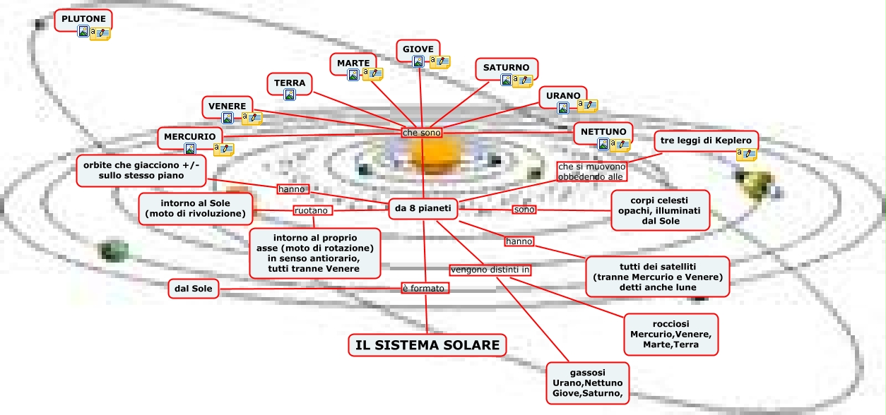Questa Cmap, creata con IHMC CmapTools, contiene informazioni relative a: sistema solare, da 8 pianeti che sono MARTE, da 8 pianeti che sono TERRA, da 8 pianeti che sono GIOVE, da 8 pianeti che sono MERCURIO, da 8 pianeti ruotano intorno al Sole (moto di rivoluzione), da 8 pianeti che sono NETTUNO, da 8 pianeti che sono URANO, da 8 pianeti sono corpi celesti opachi, illuminati dal Sole, IL SISTEMA SOLARE è formato da 8 pianeti, da 8 pianeti hanno orbite che giacciono +/- sullo stesso piano, da 8 pianeti vengono distinti in gassosi Urano,Nettuno Giove,Saturno,, da 8 pianeti che si muovono obbedendo alle tre leggi di Keplero, IL SISTEMA SOLARE è formato dal Sole, da 8 pianeti che sono SATURNO, da 8 pianeti vengono distinti in rocciosi Mercurio,Venere, Marte,Terra, da 8 pianeti ruotano intorno al proprio asse (moto di rotazione) in senso antiorario, tutti tranne Venere, da 8 pianeti che sono VENERE, da 8 pianeti hanno tutti dei satelliti (tranne Mercurio e Venere) detti anche lune