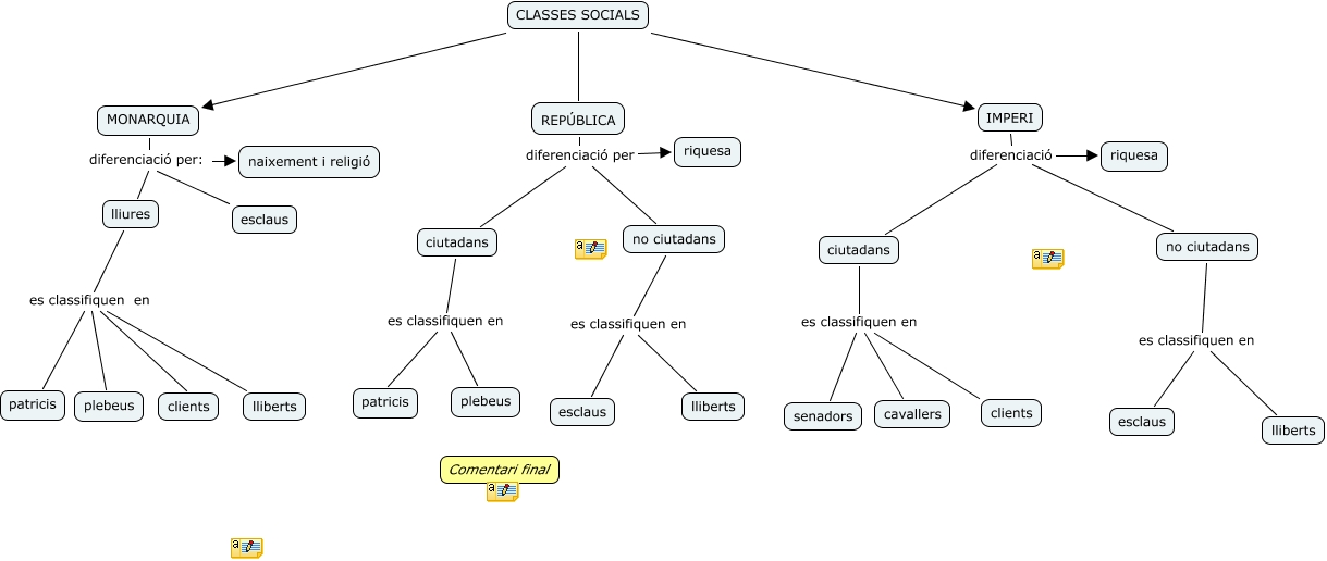 Este Cmap, tiene información relacionada con: activitat1, no ciutadans es classifiquen en lliberts, no ciutadans es classifiquen en lliberts, lliures es classifiquen en lliberts, ciutadans es classifiquen en senadors, REPÚBLICA diferenciació per riquesa, no ciutadans es classifiquen en esclaus, IMPERI diferenciació ciutadans, ciutadans es classifiquen en clients, no ciutadans es classifiquen en esclaus, REPÚBLICA diferenciació per no ciutadans, ciutadans es classifiquen en cavallers, MONARQUIA diferenciació per: naixement i religió, CLASSES SOCIALS REPÚBLICA, esclaus diferenciació per: naixement i religió, lliures es classifiquen en patricis, ciutadans es classifiquen en patricis, REPÚBLICA diferenciació per ciutadans, CLASSES SOCIALS IMPERI, lliures es classifiquen en clients, ciutadans es classifiquen en plebeus