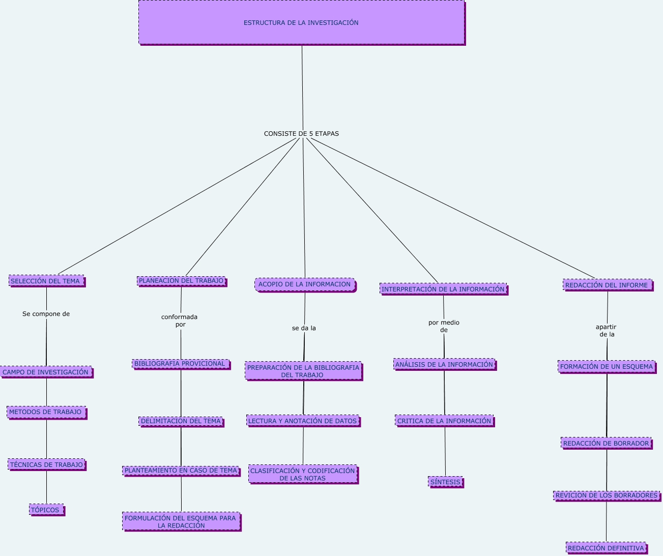 Este Cmap, tiene información relacionada con: ESTRUCTURA DE LA INV, ACOPIO DE LA INFORMACION se da la CLASIFICACIÓN Y CODIFICACIÓN DE LAS NOTAS, INTERPRETACIÓN DE LA INFORMACIÓN por medio de SÍNTESIS, SELECCIÓN DEL TEMA Se compone de METODOS DE TRABAJO, PLANEACION DEL TRABAJO conformada por BIBLIOGRAFIA PROVICIONAL, REDACCIÓN DEL INFORME apartir de la REDACCIÓN DEFINITIVA, ACOPIO DE LA INFORMACION se da la PREPARACIÓN DE LA BIBLIOGRAFIA DEL TRABAJO, ESTRUCTURA DE LA INVESTIGACIÓN CONSISTE DE 5 ETAPAS INTERPRETACIÓN DE LA INFORMACIÓN, PLANEACION DEL TRABAJO conformada por PLANTEAMIENTO EN CASO DE TEMA, REDACCIÓN DEL INFORME apartir de la REDACCIÓN DE BORRADOR, SELECCIÓN DEL TEMA Se compone de TÉCNICAS DE TRABAJO, SELECCIÓN DEL TEMA Se compone de CAMPO DE INVESTIGACIÓN, ESTRUCTURA DE LA INVESTIGACIÓN CONSISTE DE 5 ETAPAS ACOPIO DE LA INFORMACION, PLANEACION DEL TRABAJO conformada por DELIMITACION DEL TEMA, ESTRUCTURA DE LA INVESTIGACIÓN CONSISTE DE 5 ETAPAS SELECCIÓN DEL TEMA, REDACCIÓN DEL INFORME apartir de la REVICION DE LOS BORRADORES, ESTRUCTURA DE LA INVESTIGACIÓN CONSISTE DE 5 ETAPAS REDACCIÓN DEL INFORME, INTERPRETACIÓN DE LA INFORMACIÓN por medio de ANÁLISIS DE LA INFORMACIÓN, ESTRUCTURA DE LA INVESTIGACIÓN CONSISTE DE 5 ETAPAS PLANEACION DEL TRABAJO, ACOPIO DE LA INFORMACION se da la LECTURA Y ANOTACIÓN DE DATOS, REDACCIÓN DEL INFORME apartir de la FORMACIÓN DE UN ESQUEMA