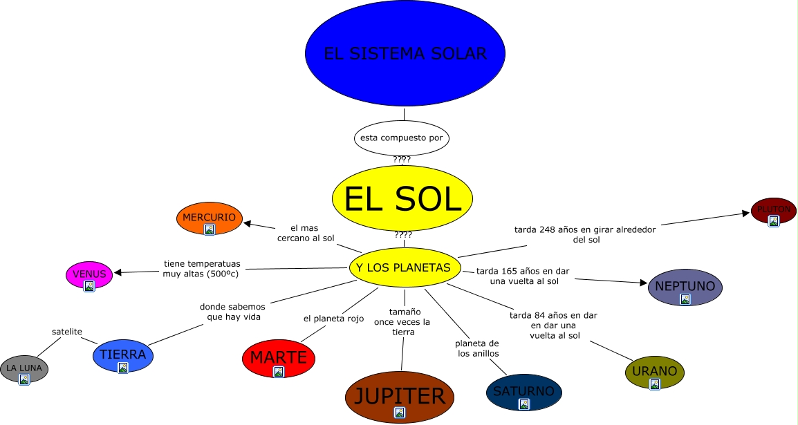 Este Cmap, tiene información relacionada con: El sistema solar, Y LOS PLANETAS tarda 165 años en dar una vuelta al sol NEPTUNO, Y LOS PLANETAS tiene temperatuas muy altas (500ºc) VENUS, EL SISTEMA SOLAR ???? esta compuesto por, esta compuesto por ???? EL SOL, Y LOS PLANETAS donde sabemos que hay vida TIERRA, EL SOL ???? Y LOS PLANETAS, TIERRA satelite LA LUNA, Y LOS PLANETAS planeta de los anillos SATURNO, Y LOS PLANETAS el mas cercano al sol MERCURIO, Y LOS PLANETAS tarda 84 años en dar en dar una vuelta al sol URANO, Y LOS PLANETAS tarda 248 años en girar alrededor del sol PLUTON, Y LOS PLANETAS tamaño once veces la tierra JUPITER, Y LOS PLANETAS el planeta rojo MARTE